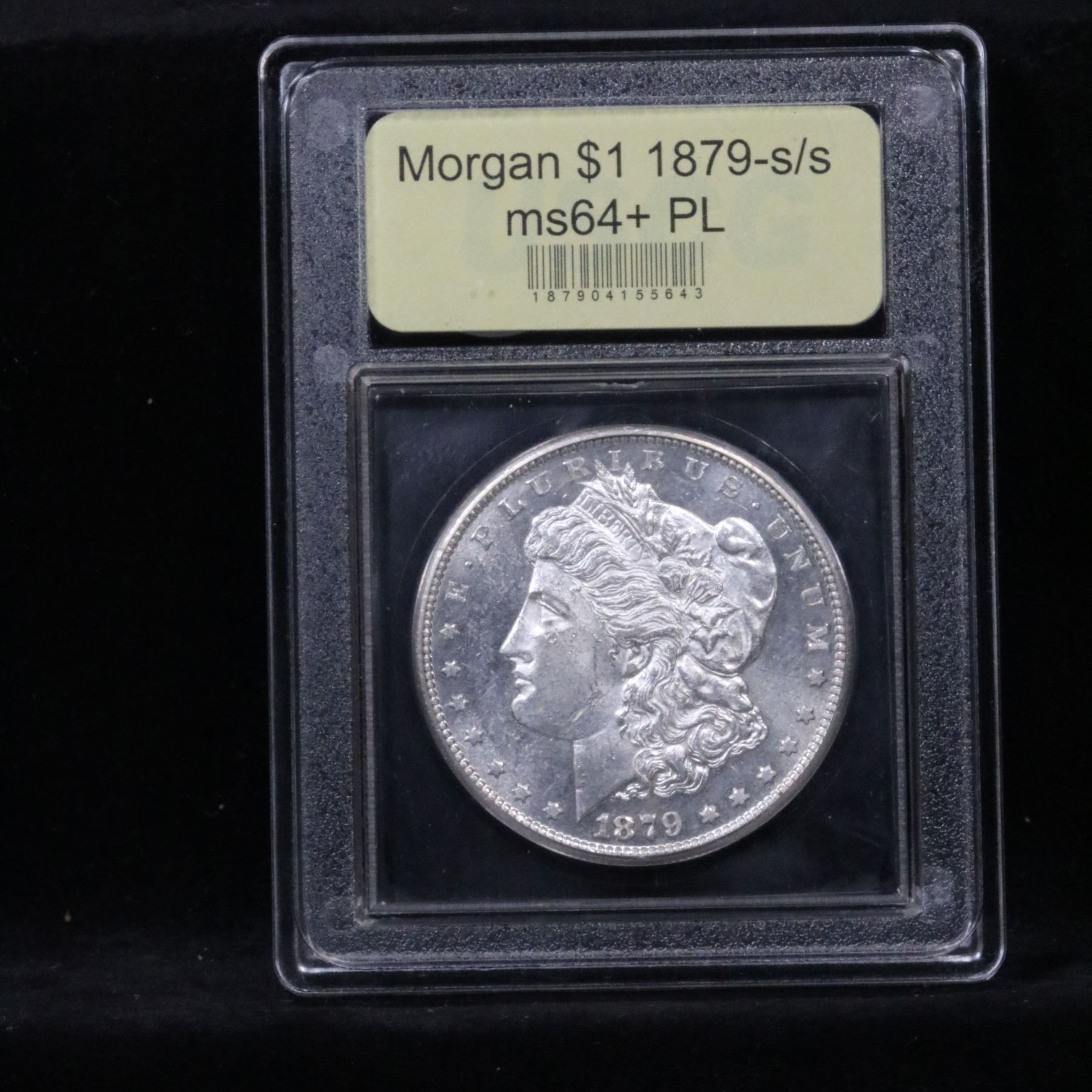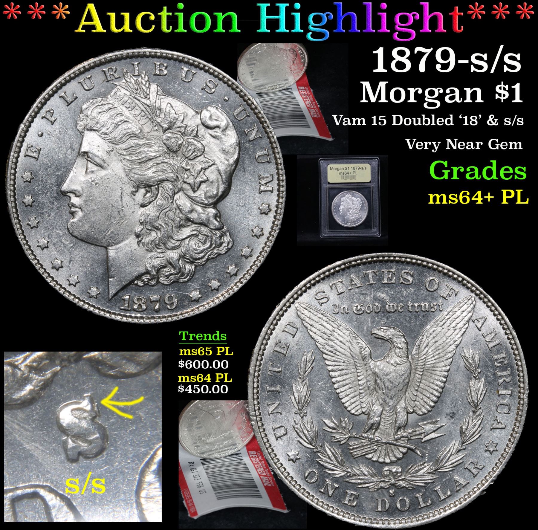 ***Auction Highlight*** 1879-s/s Vam 15 Doubled '18' & s/s Very Near Gem Morgan Dollar $1 Graded Choice Unc+ PL By USCG. A Corey's Pick, Bid to Win Coin