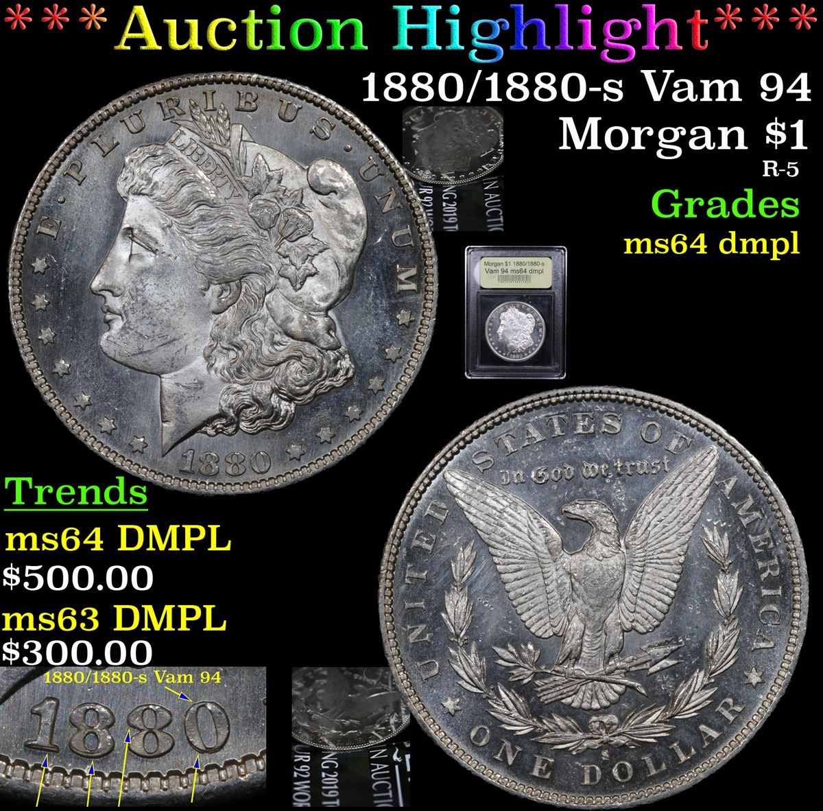 ***Auction Highlight*** 1880/1880-s Vam 94 Morgan Dollar $1 Graded Choice Unc DMPL By USCG (fc)