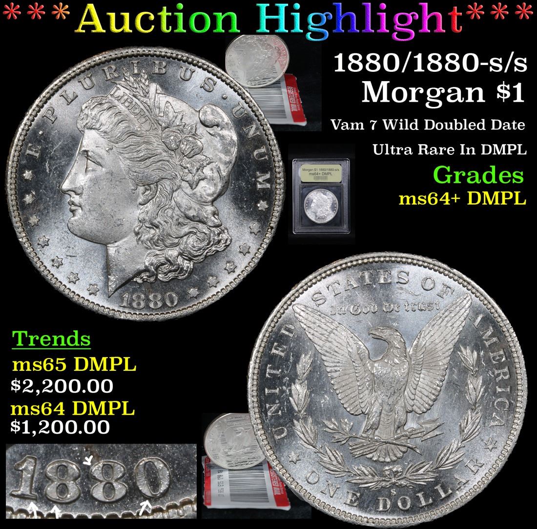 ***Auction Highlight*** 1880/1880-s/s Vam 7 Wild Doubled Date Ultra Rare In DMPL Morgan Dollar $1 Graded Choice Unc+ DMPL By USCG. A Corey's Pick, Bid to Win, Don't let it get Away, you might not find its equal Coin