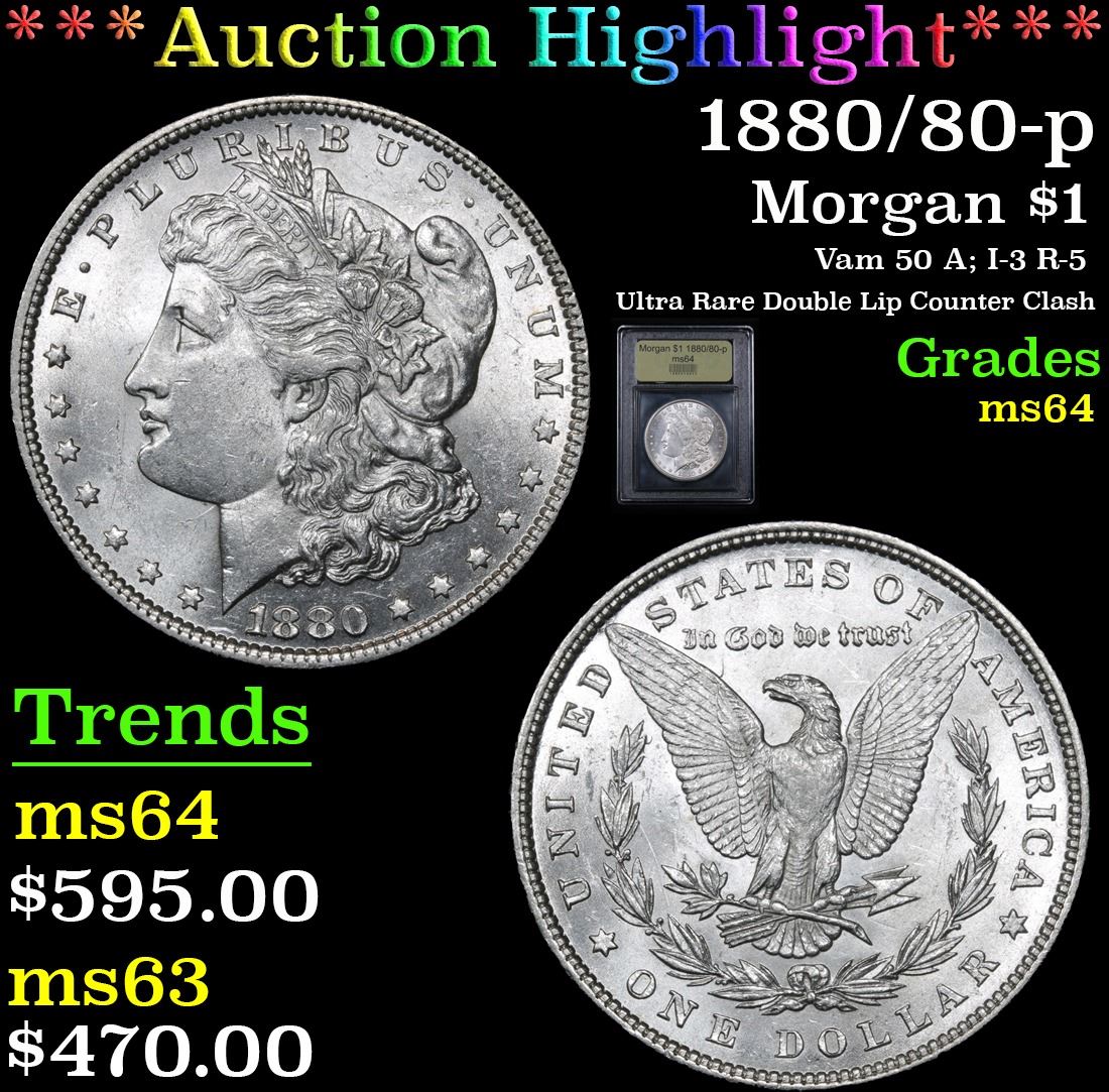 ***Auction Highlight*** 1880/80-p Vam 50 A; I-3 R-5 Ultra Rare Double Lip Counter Clash Morgan Dollar $1 Graded Choice Unc By USCG. A Corey's Pick, Bid to Win, Don't let it get Away, you might not find its equal Coin