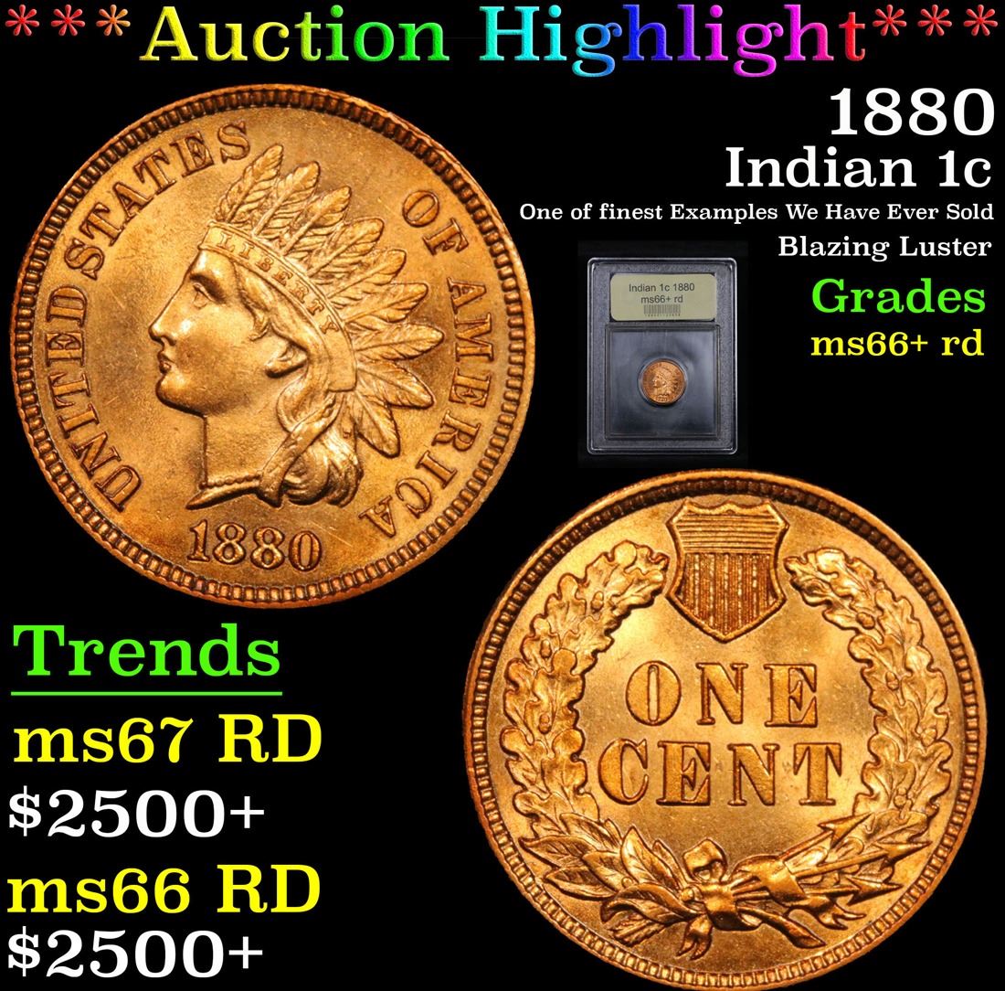 ***Auction Highlight*** 1880 Indian Cent 1c Graded GEM++ RD By USCG. One of finest Examples We Have Ever Sold Blazing Luster A Corey's Pick, Bid to Win, Don't let it get Away, you might not find its equal Coin