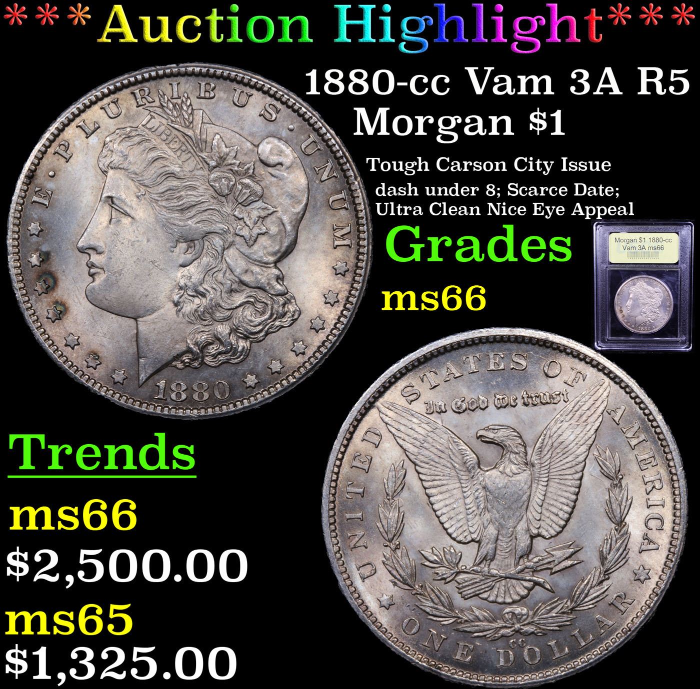 ***Auction Highlight*** 1880-cc Vam 3A R5 Morgan Dollar $1 Graded GEM+ Unc By USCG (fc)