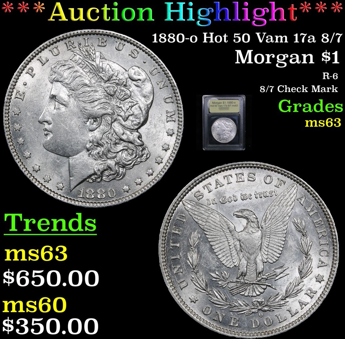 ***Auction Highlight*** 1880-o Hot 50 Vam 17a 8/7 R-6 8/7 Check Mark Morgan Dollar $1 Graded Select Unc By USCG. A Corey's Pick, Bid to Win Coin