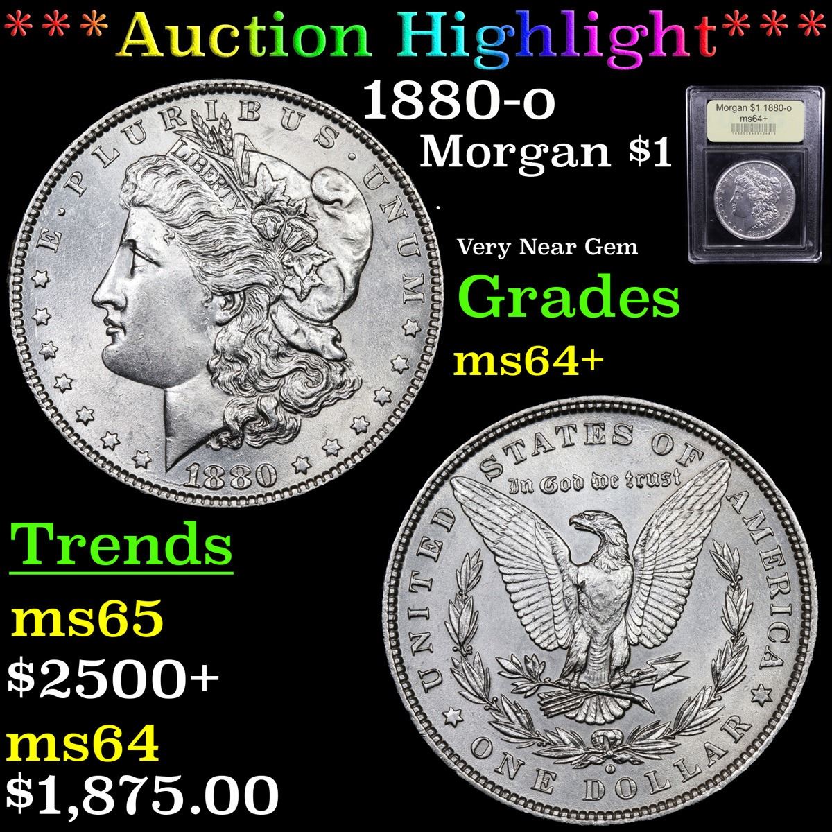 ***Auction Highlight*** 1880-o . Very Near Gem Morgan Dollar $1 Graded Choice+ Unc By USCG. A Corey's Pick, Bid to Win, Don't let it get Away Coin