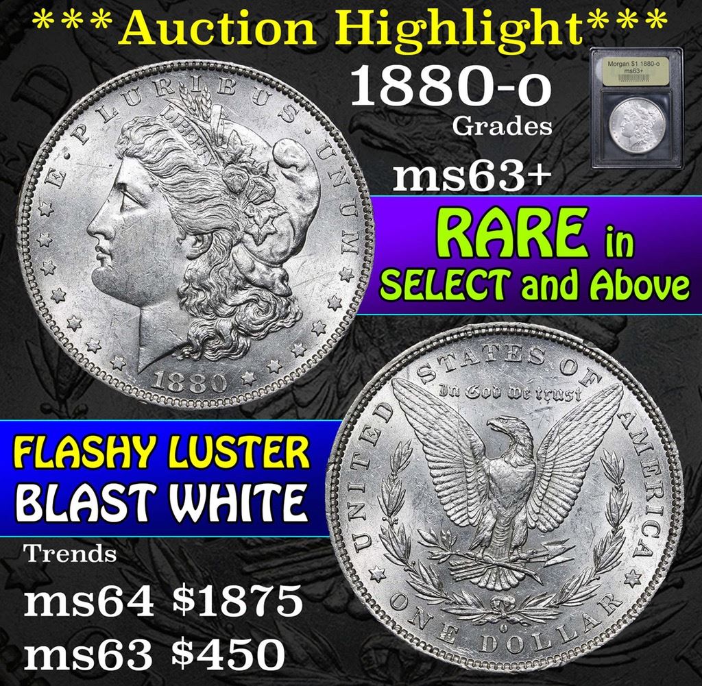 ***Auction Highlight*** 1880-o Much Better Date . Morgan Dollar $1 Graded Select+ Unc By USCG. 0
