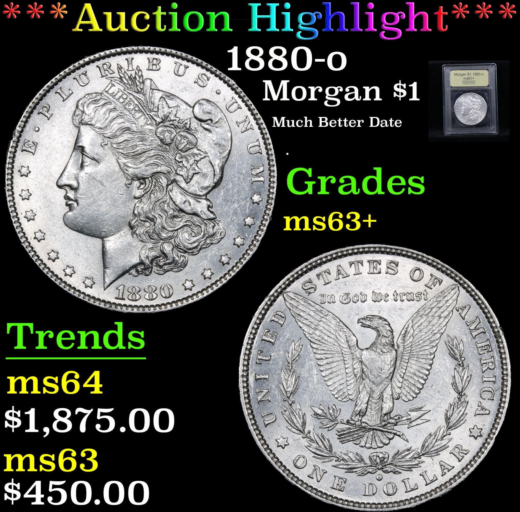 ***Auction Highlight*** 1880-o Much Better Date . Morgan Dollar $1 Graded Select+ Unc By USCG.