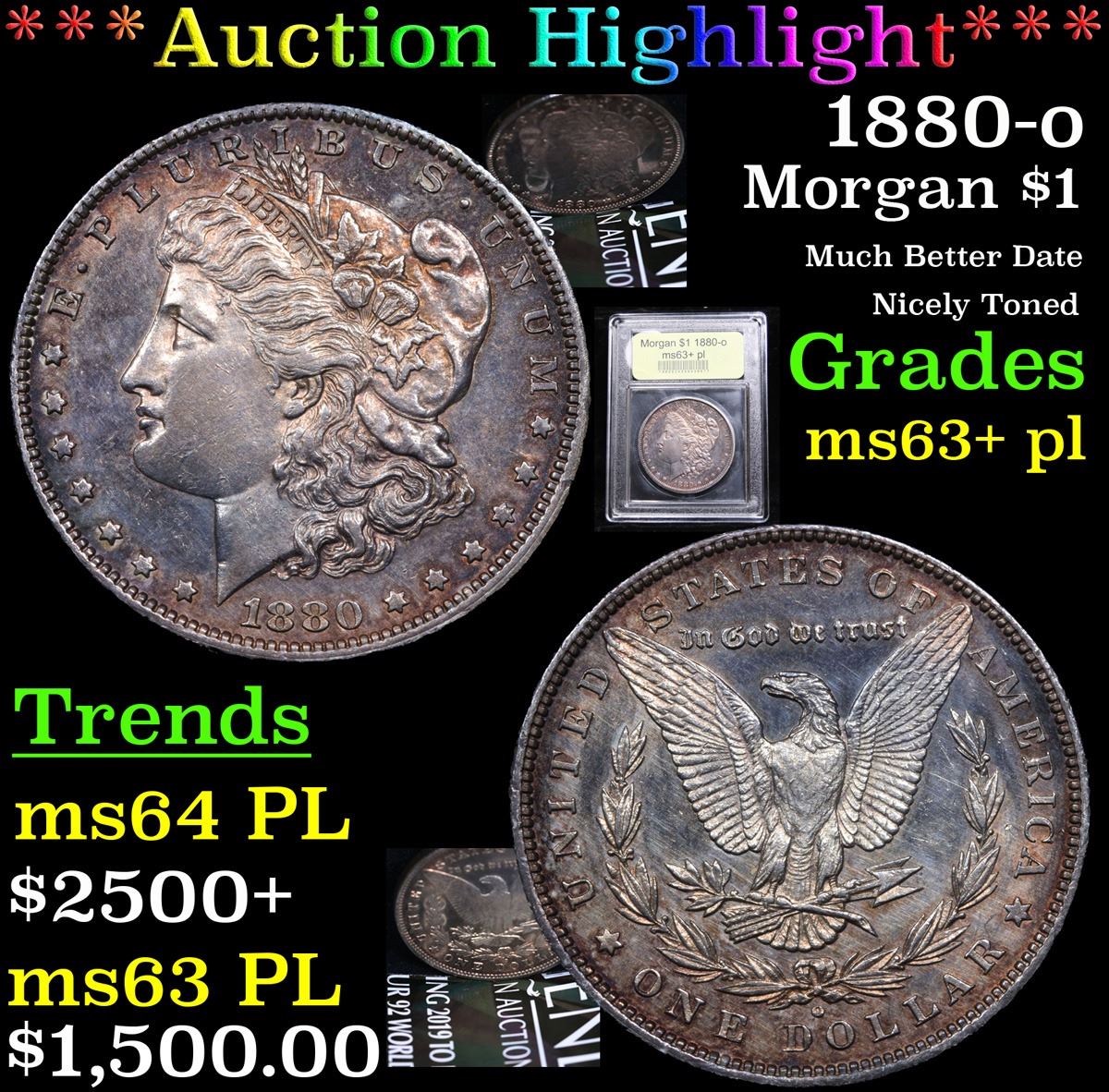 ***Auction Highlight*** 1880-o Much Better Date Nicely Toned Morgan Dollar $1 Graded Select Unc+ PL By USCG.