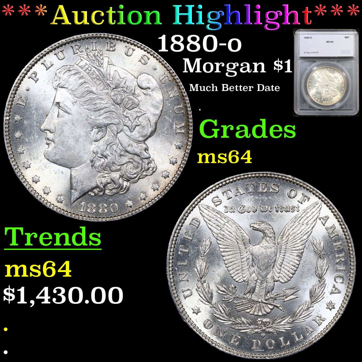 ***Auction Highlight*** 1880-o Morgan Dollar $1 Graded ms64 By SEGS.