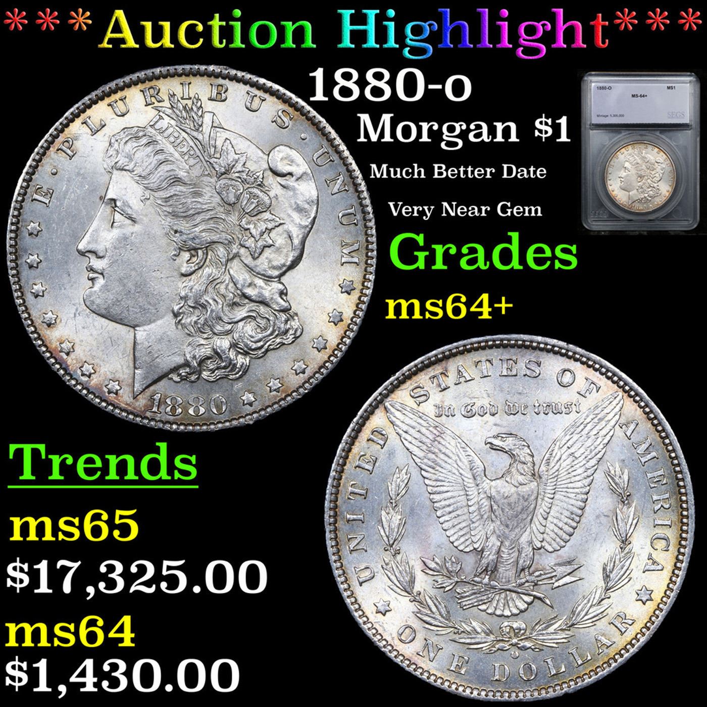 ***Auction Highlight*** 1880-o Morgan Dollar 1 Graded ms64+ By SEGS.