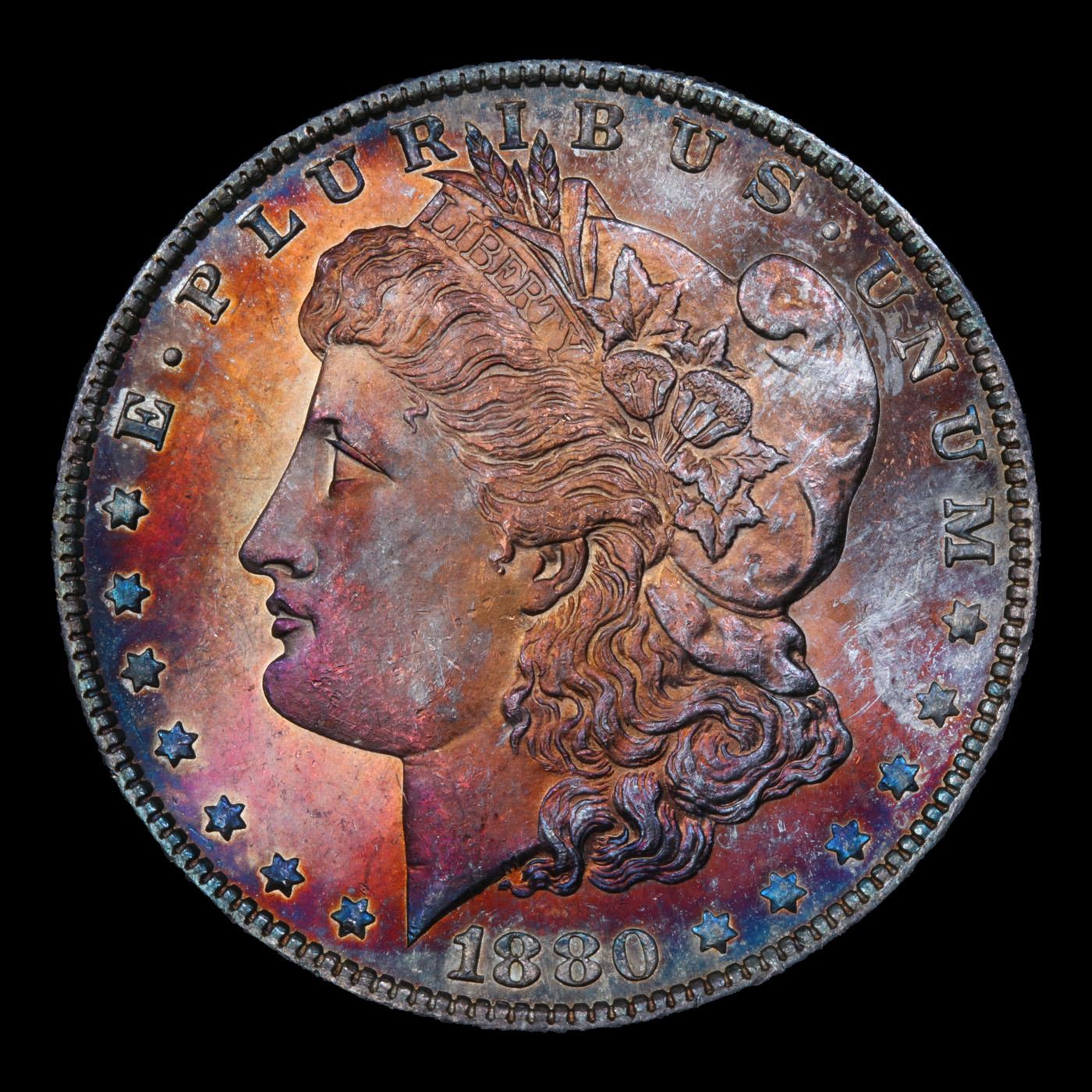 ***Auction Highlight*** 1880-o Rainbow Toned Morgan Dollar $1 Graded Choice+ Unc By USCG (fc)