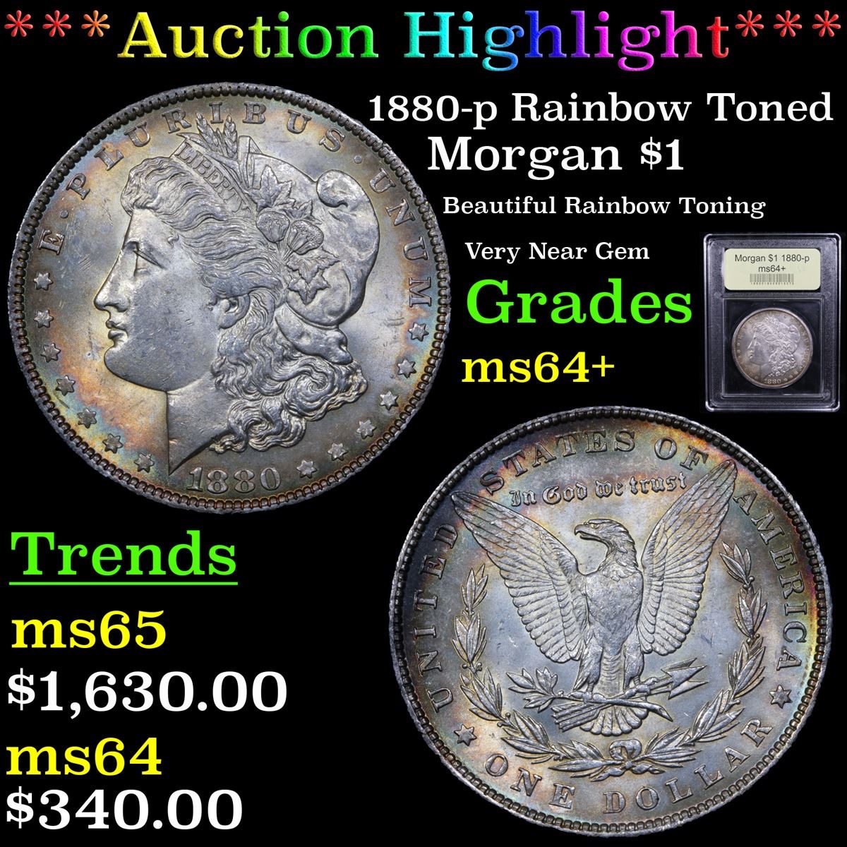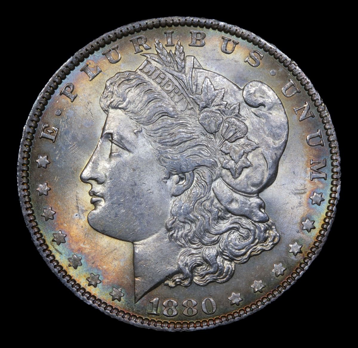 ***Auction Highlight*** 1880-p Rainbow Toned Morgan Dollar $1 Graded Choice+ Unc By USCG.