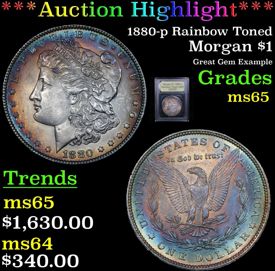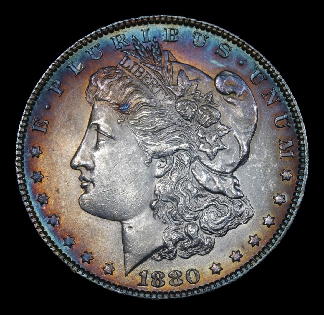 ***Auction Highlight*** 1880-p Rainbow Toned . Great Gem Example Morgan Dollar $1 Graded GEM Unc By USCG. A Corey's Pick, Bid to Win Coin