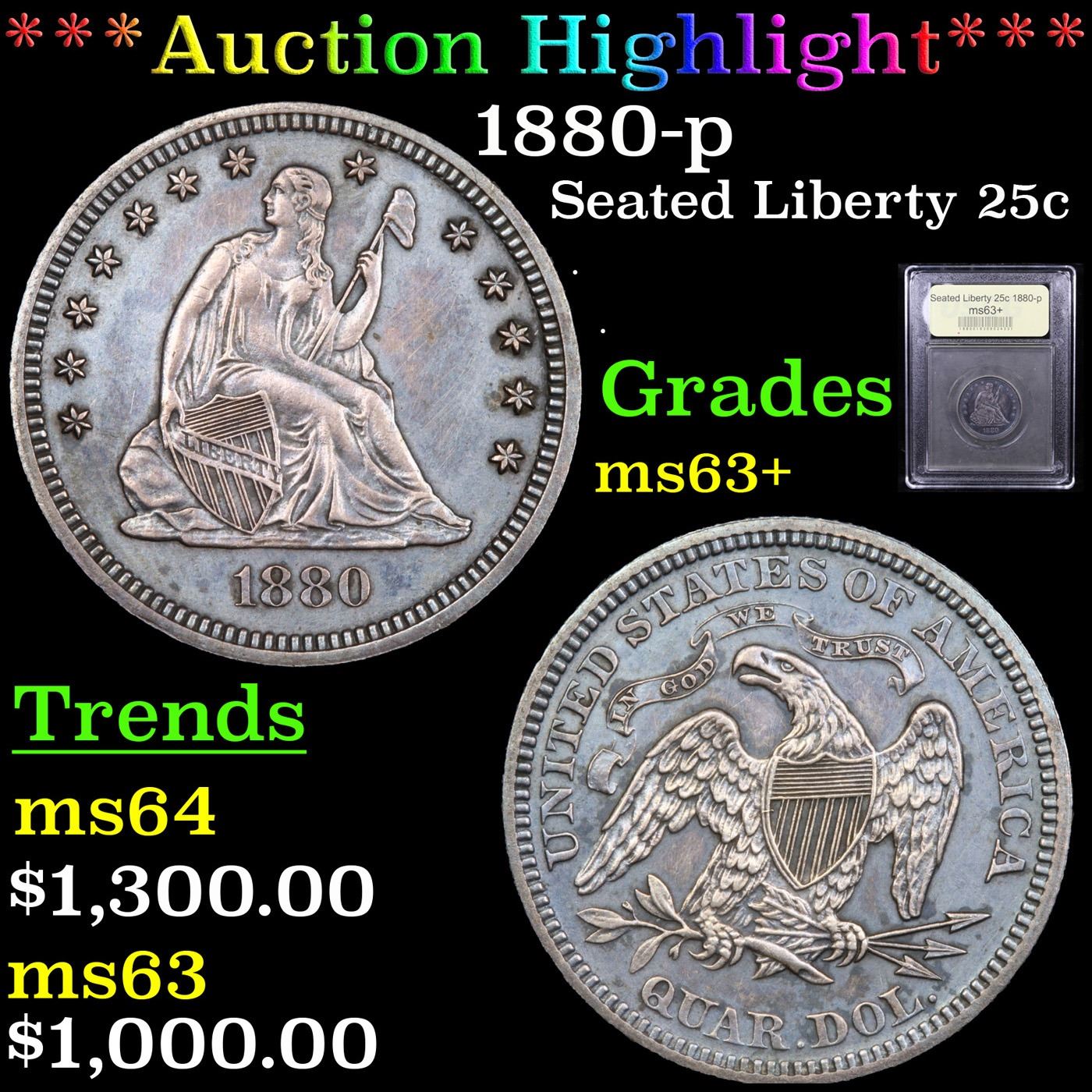 ***Auction Highlight*** 1880-p Seated Liberty Quarter 25c Graded Select+ Unc By USCG (fc)