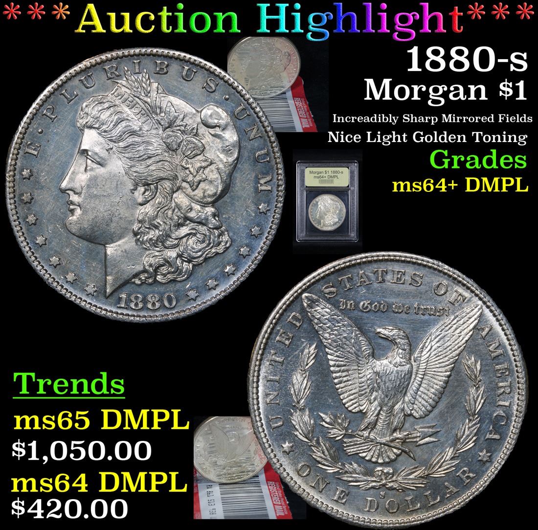 ***Auction Highlight*** 1880-s Increadibly Sharp Mirrored Fields Nice Light Golden Toning Morgan Dollar $1 Graded Choice Unc+ DMPL By USCG. A Corey's Pick, Bid to Win, Don't let it get Away Coin