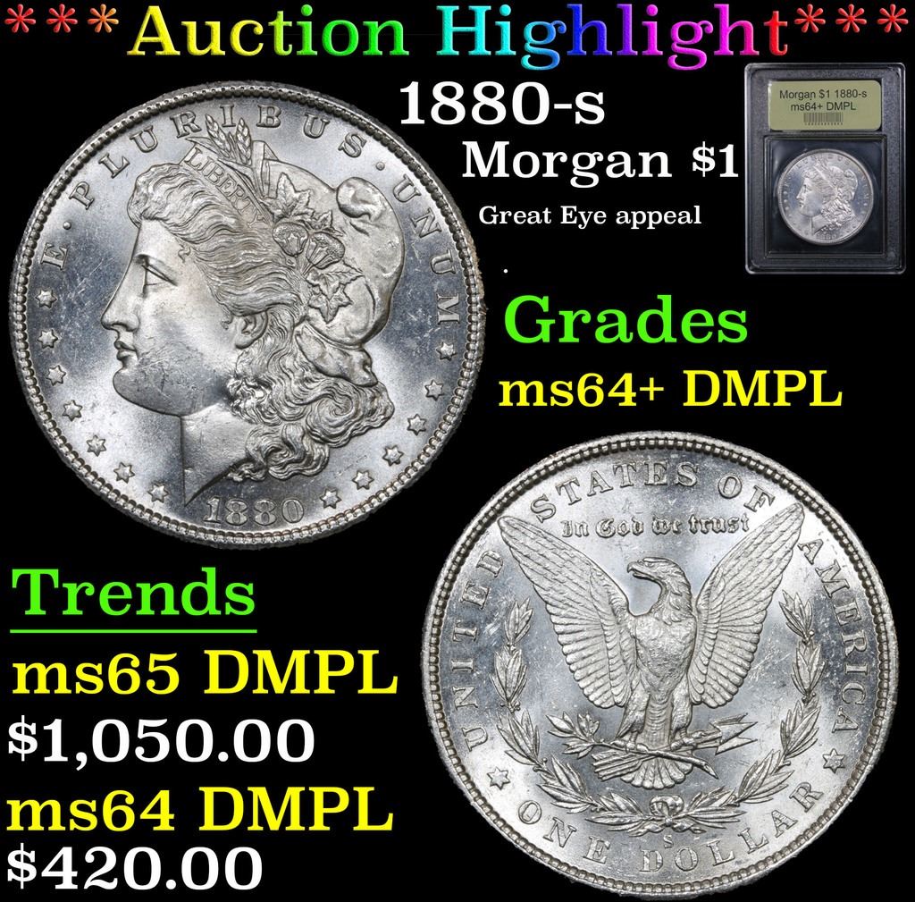 ***Auction Highlight*** 1880-s Great Eye Appeal Very Near Gem Morgan Dollar $1 Graded Choice Unc+ DMPL By USCG. A Corey's Pick, Bid to Win Coin