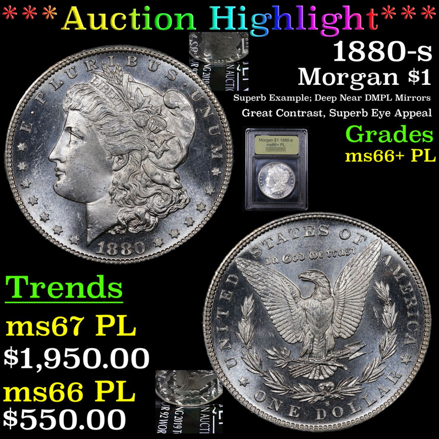 ***Auction Highlight*** 1880-s Morgan Dollar $1 Graded GEM++ PL By USCG. Superb example. Deep near DMPL mirrors. Great contrast, superb eye appeal, very clean cheek and fields. A Corey's Pick, Bid to Win, Don't let it get Away Coin