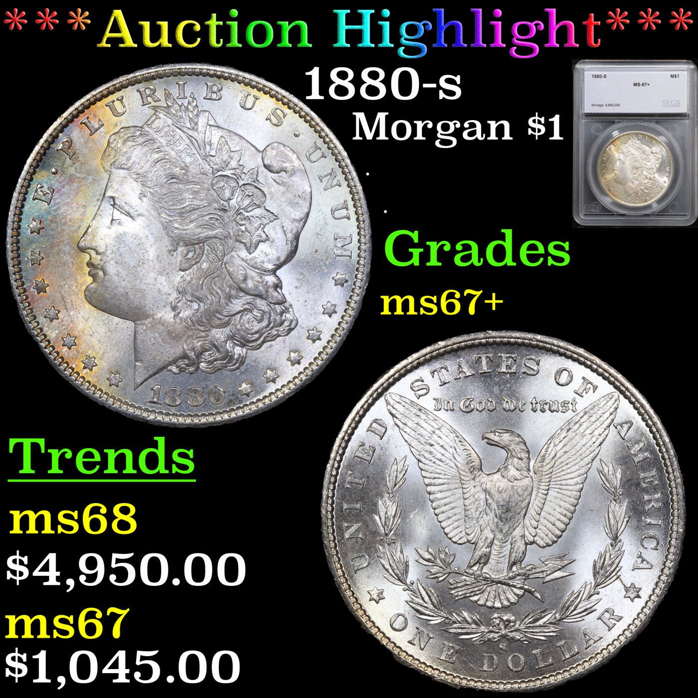 ***Auction Highlight*** 1880-s Morgan Dollar $1 Graded ms67+ By SEGS.