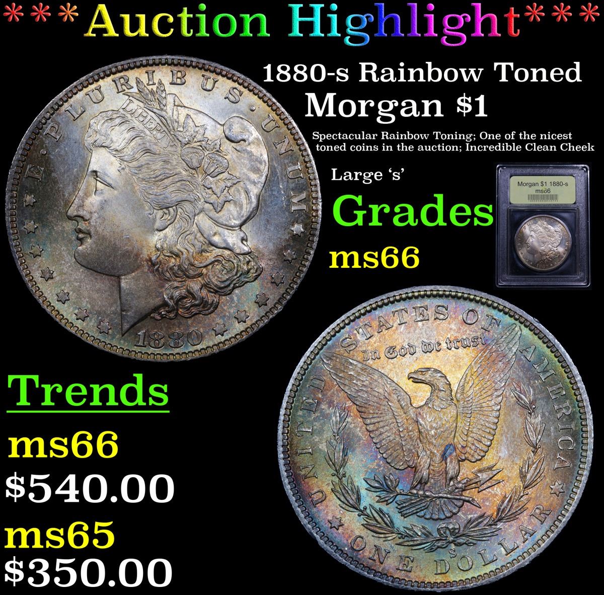 ***Auction Highlight*** 1880-s Rainbow Toned Morgan Dollar $1 Graded GEM+ Unc By USCG. A Corey's Pick, Bid to Win Coin