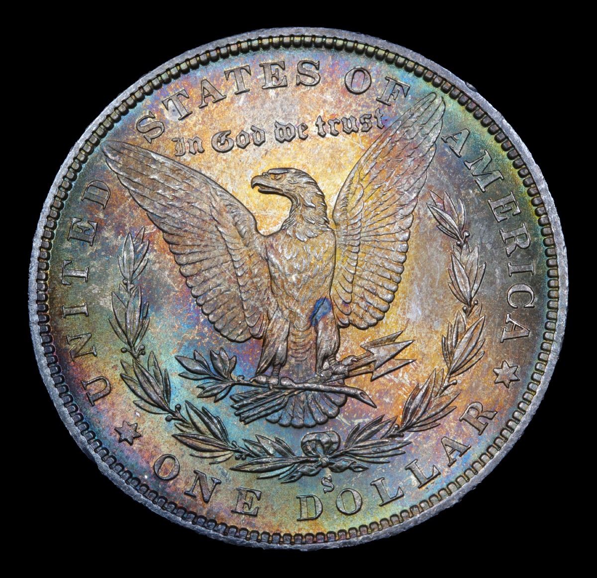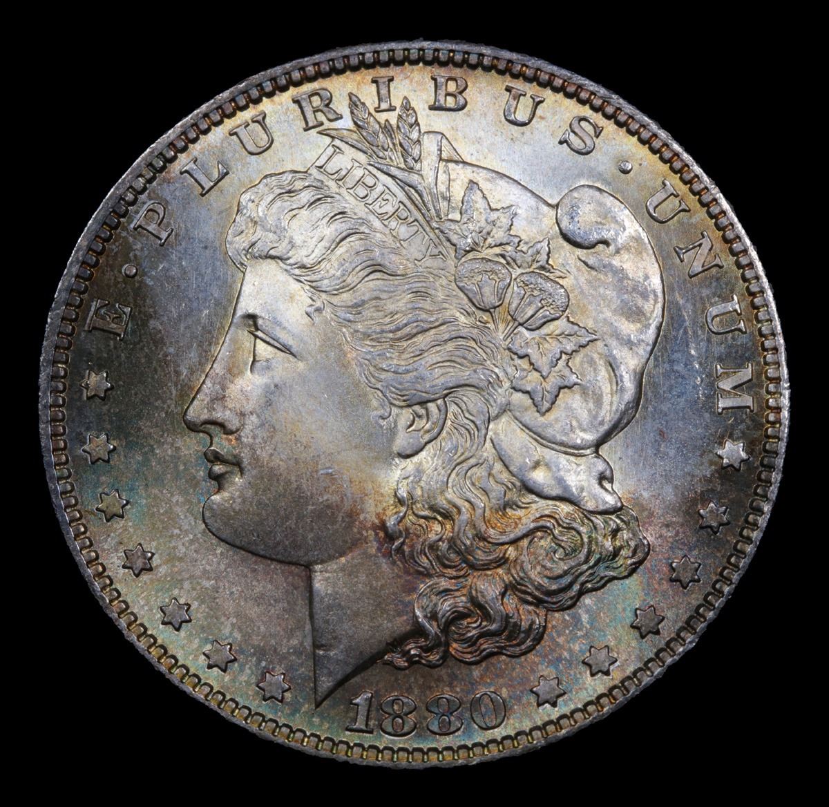 ***Auction Highlight*** 1880-s Rainbow Toned Morgan Dollar $1 Graded GEM+ Unc By USCG (fc)