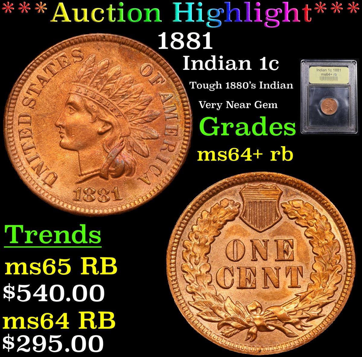 ***Auction Highlight*** 1881 Indian Cent 1c Graded Choice+ Unc RB By USCG. A Corey's Pick, Bid to Win Coin