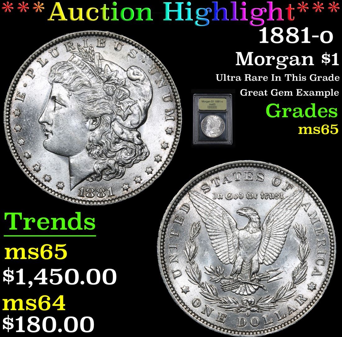***Auction Highlight*** 1881-o Morgan Dollar $1 Graded GEM Unc By USCG. Ultra Rare In This Grade Great Gem Example 0