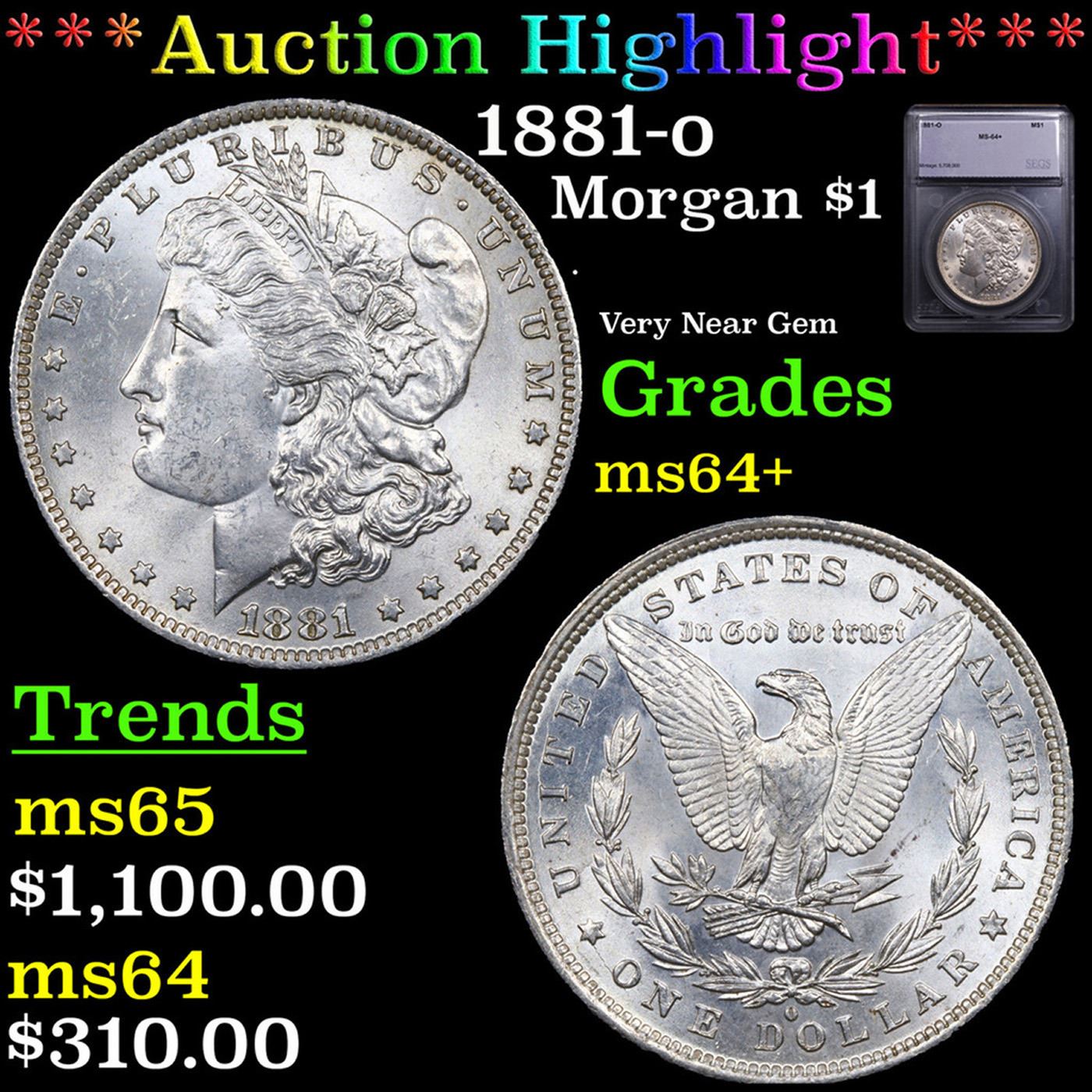 ***Auction Highlight*** 1881-o Morgan Dollar $1 Graded ms64+ BY SEGS.