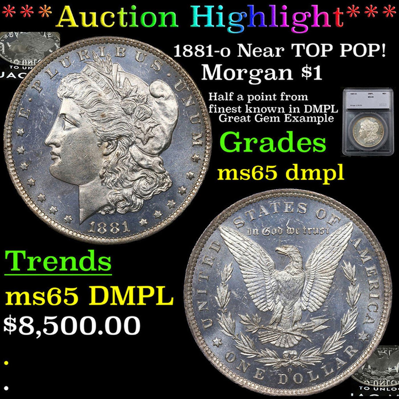 ***Auction Highlight*** 1881-o NEar TOP POP! Morgan Dollar $1 Graded ms65 dmpl By SEGS. A Corey's Pick, Bid to Win, Don't let it get Away, you might not find its equal Coin. I give this coin my highest recommendation