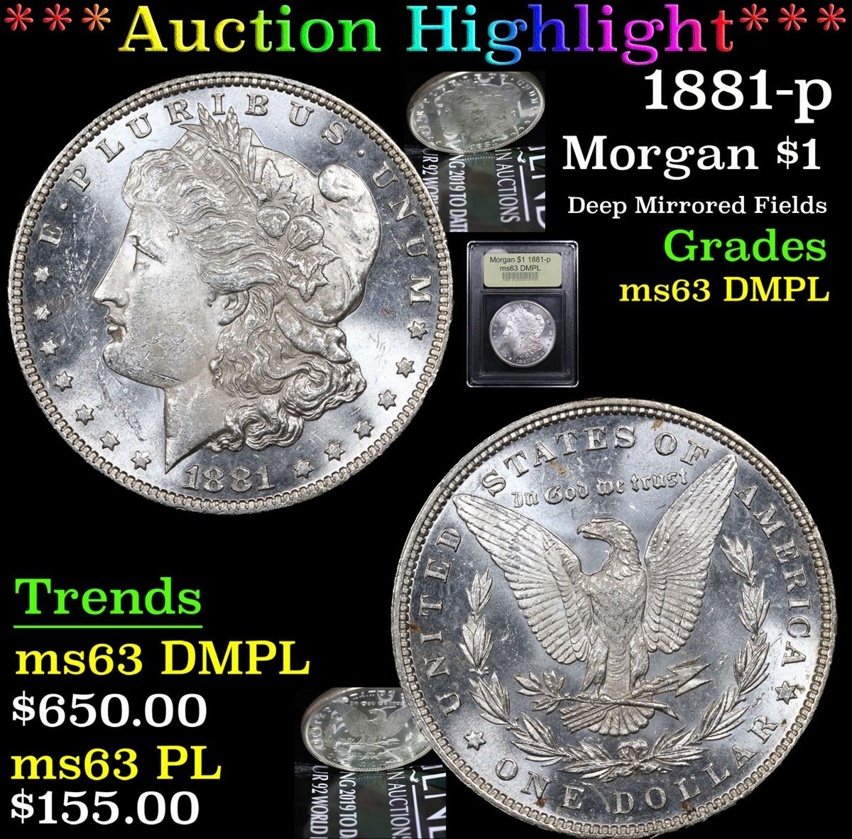 ***Auction Highlight*** 1881-p Deep Mirrored Fields . Morgan Dollar $1 Graded Select Unc DMPL By USCG.