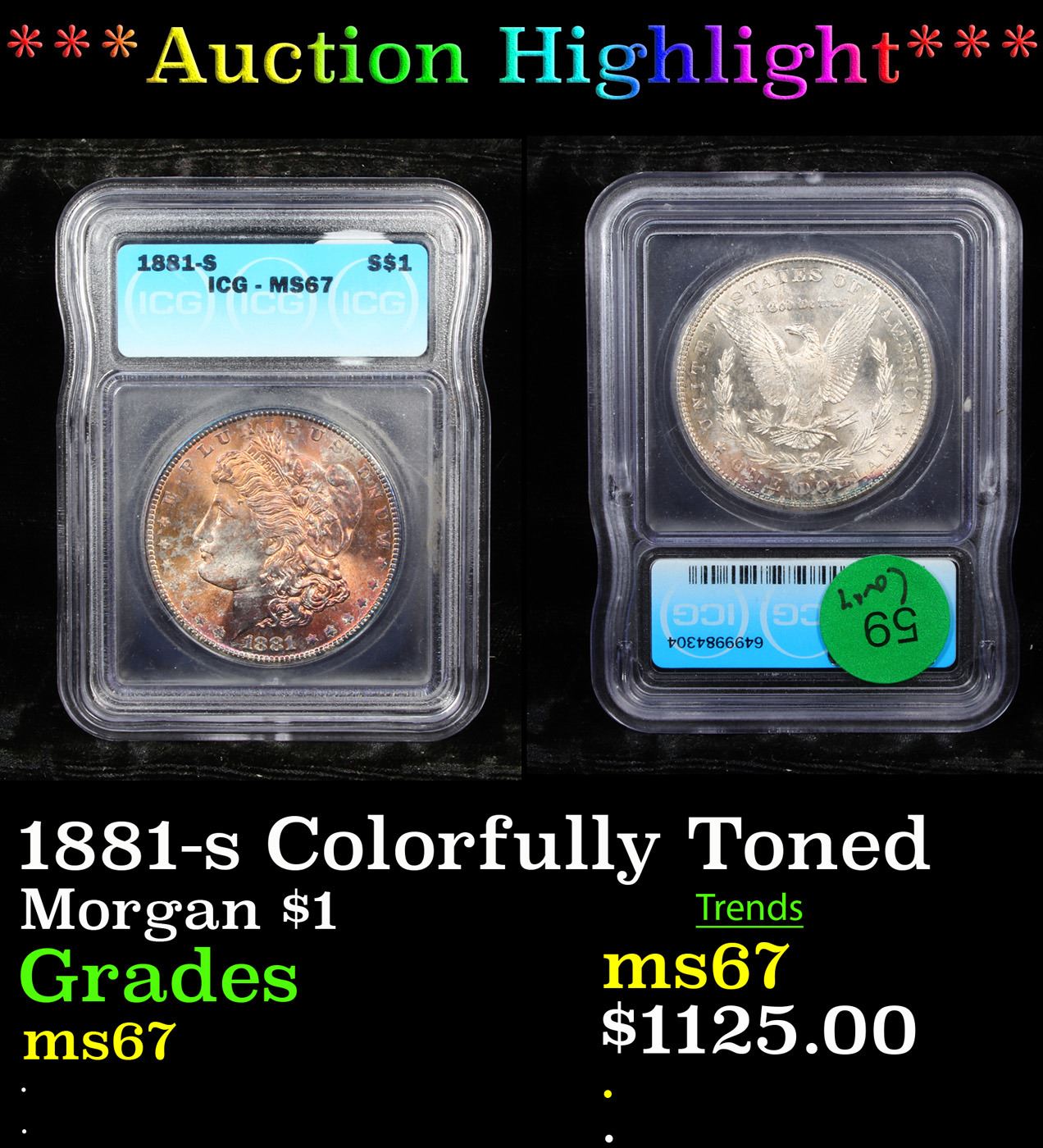 ***Auction Highlight*** 1881-s Colorfully Toned Morgan Dollar $1 Graded ms67 By ICG.