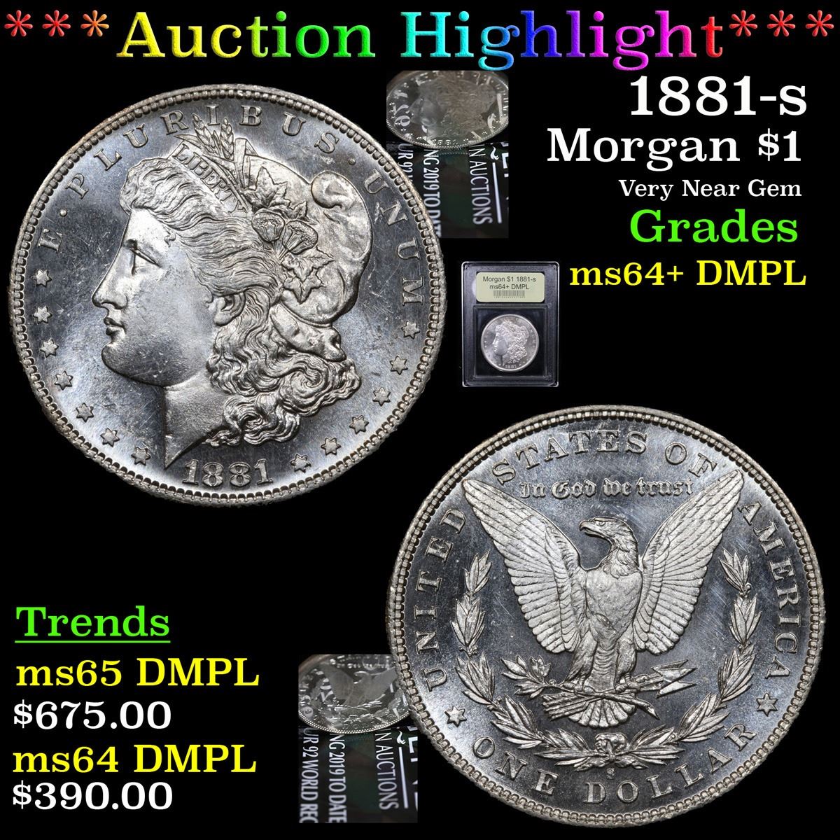 ***Auction Highlight*** 1881-s . Very Near Gem Morgan Dollar $1 Graded Choice Unc+ DMPL By USCG. A Corey's Pick, Bid to Win Coin