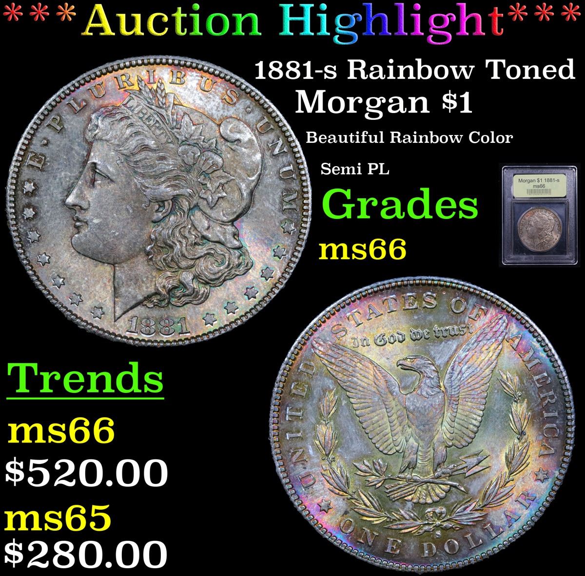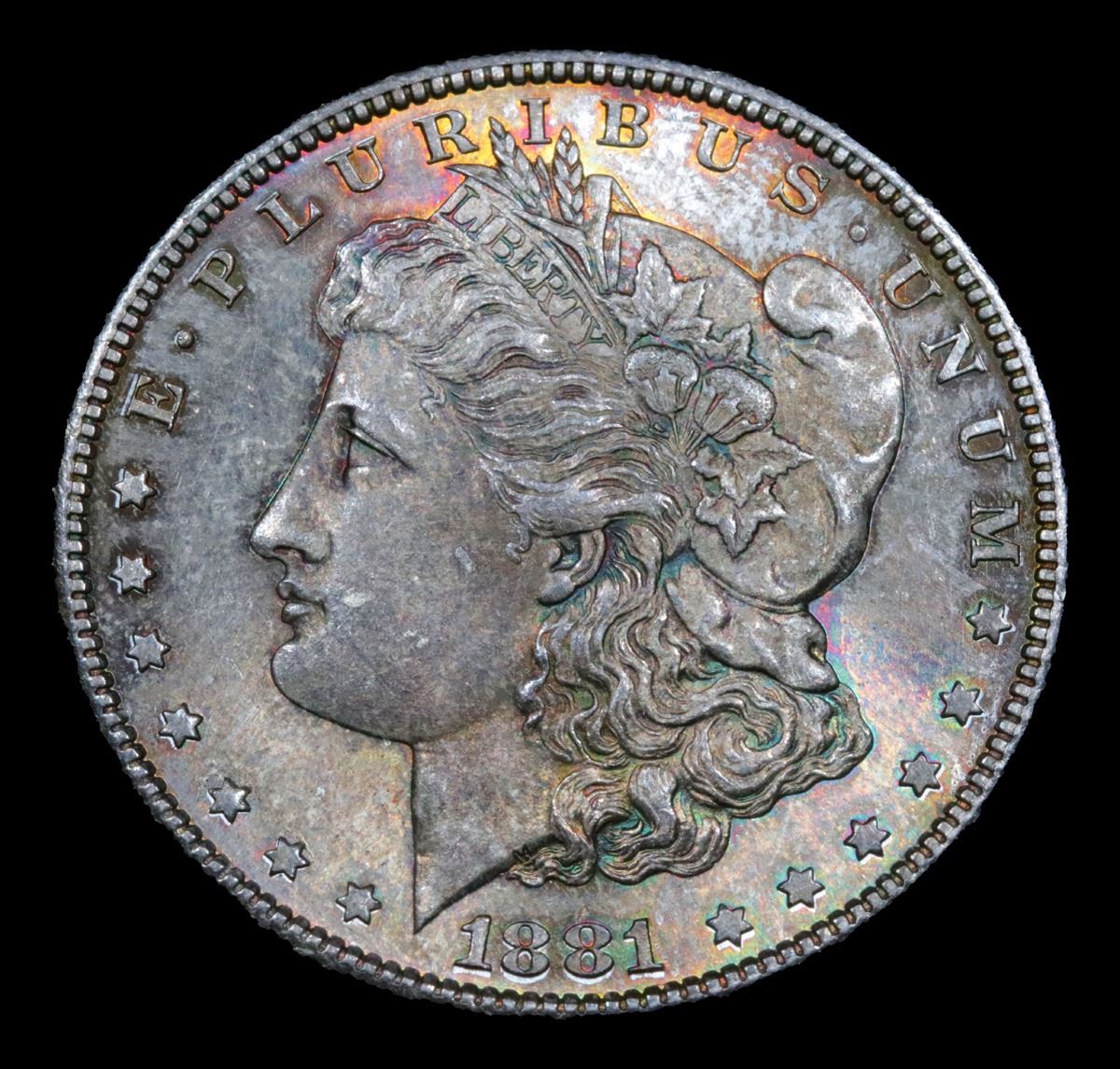 ***Auction Highlight*** 1881-s Rainbow Toned Morgan Dollar $1 Graded GEM+ Unc By USCG (fc)