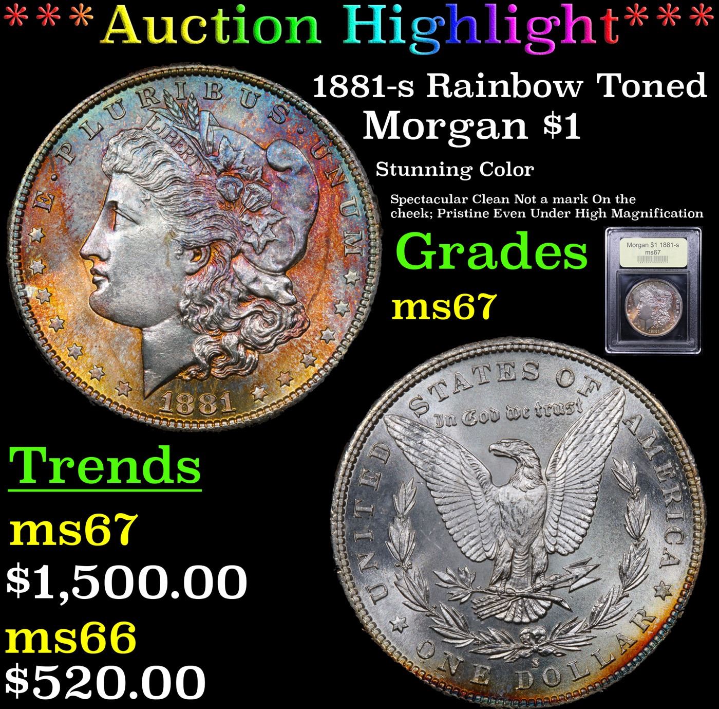 ***Auction Highlight*** 1881-s Rainbow Toned Morgan Dollar $1 Graded GEM++ Unc By USCG. A Corey's Pick, Bid to Win, Don't let it get Away, you might not find its equal Coin