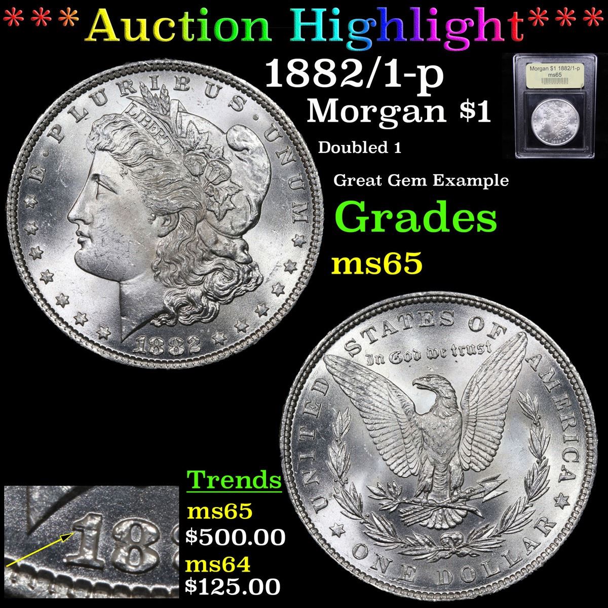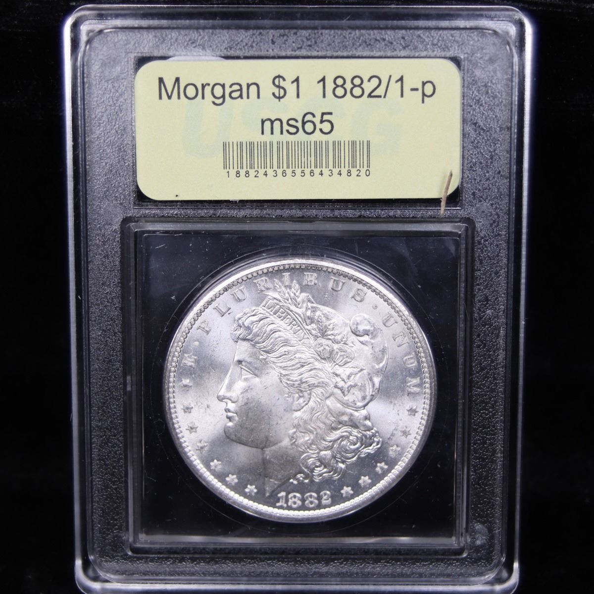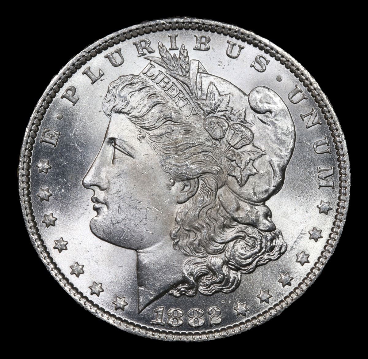 ***Auction Highlight*** 1882/1-p Doubled 1 Great Gem Example Morgan Dollar $1 Graded GEM Unc By USCG. 0