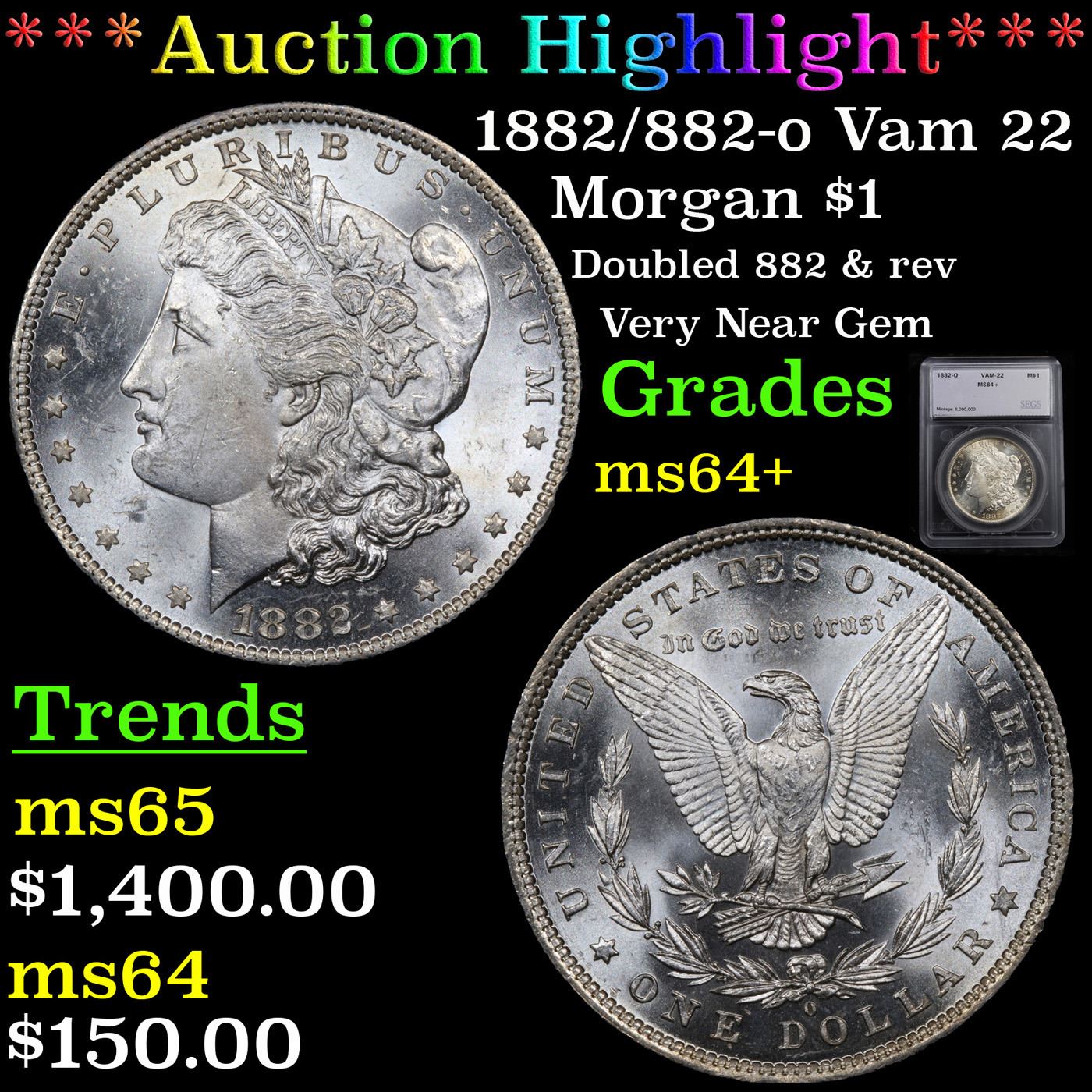 ***Auction Highlight*** 1882/882-o Vam 22 Morgan Dollar $1 Graded ms64+ By SEGS. A Corey's Pick, Bid to Win Coin