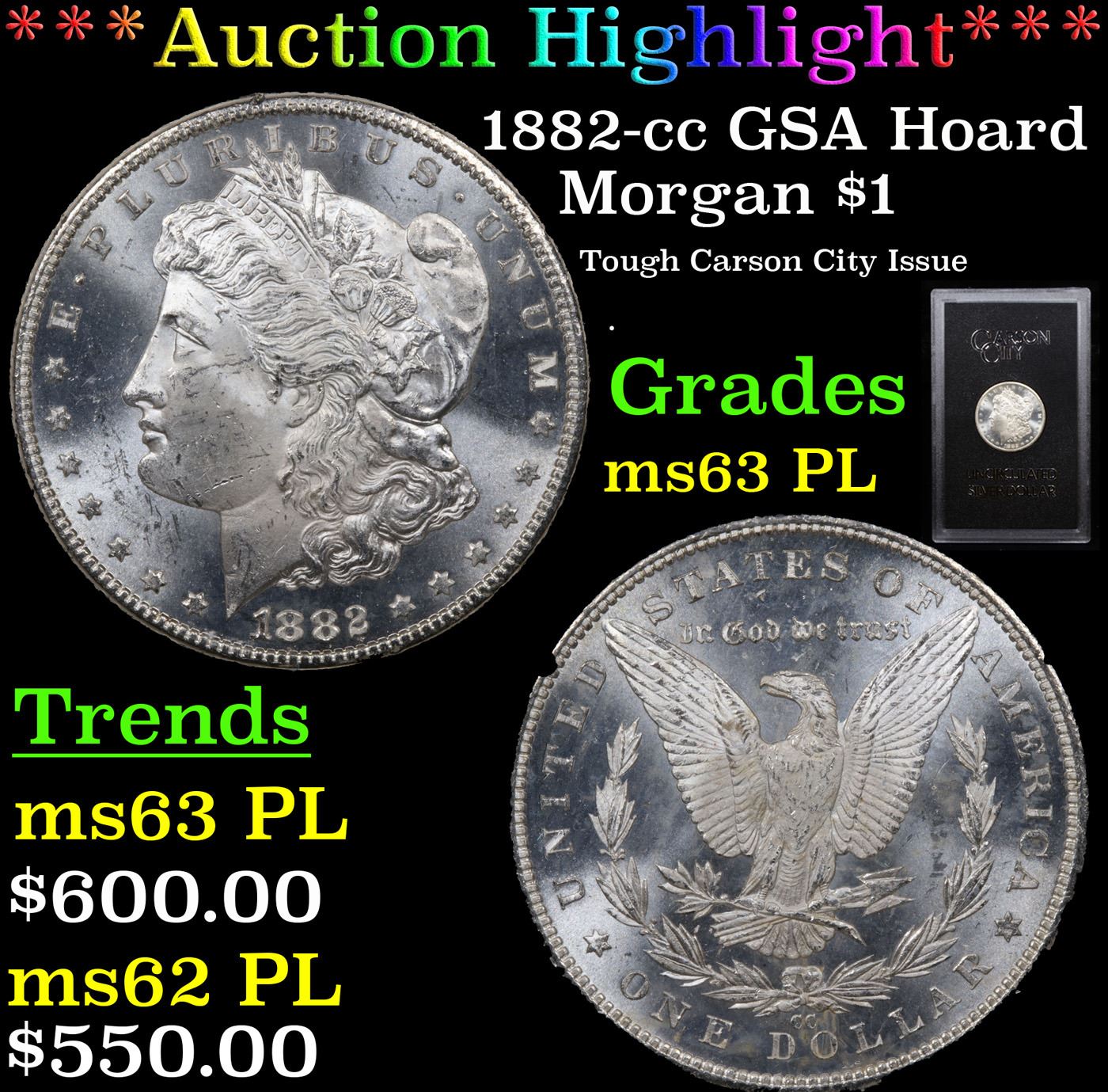 ***Auction Highlight*** 1882-cc GSA Hoard Morgan Dollar $1 Grades Select Unc PL. Cones With Box And COA