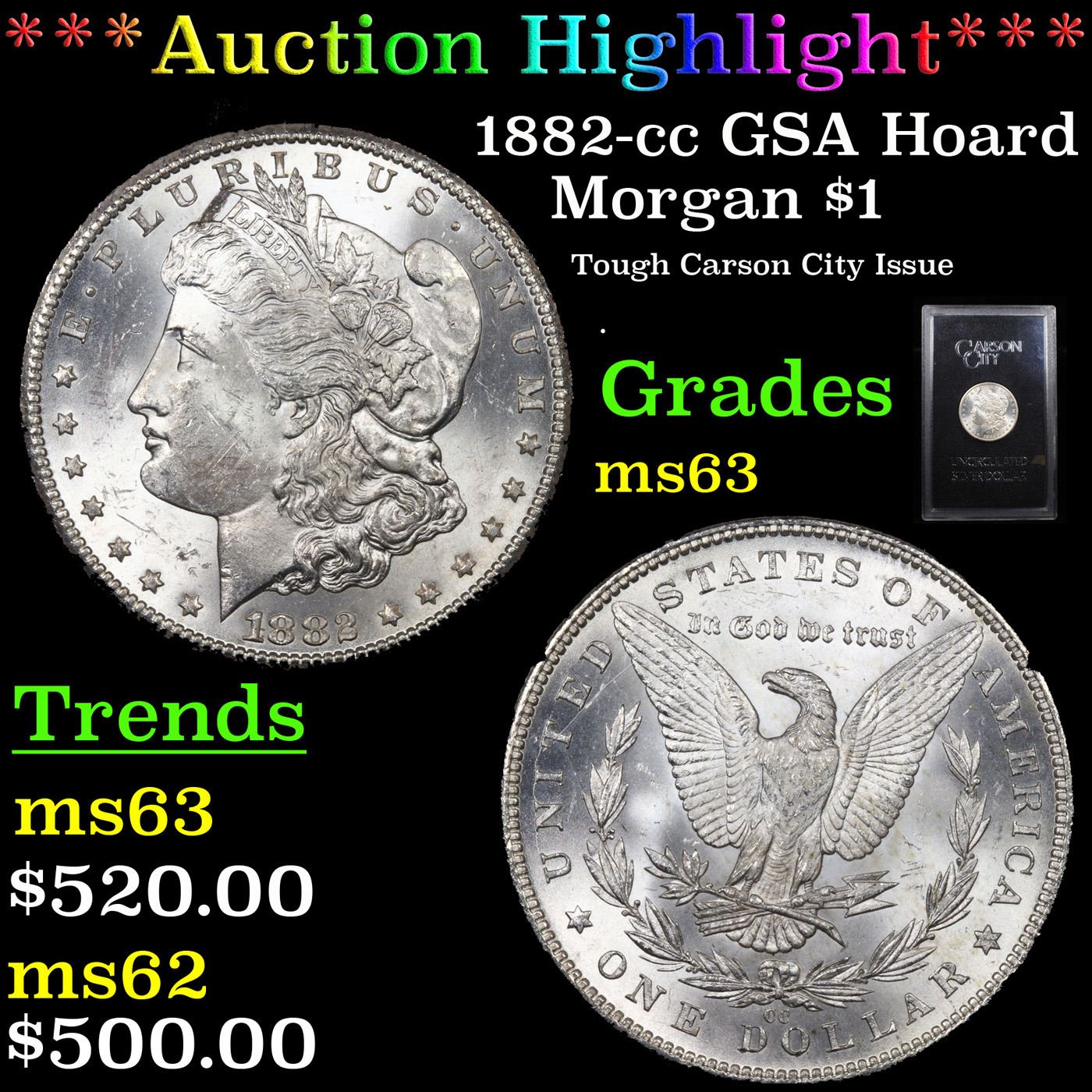 ***Auction Highlight*** 1882-cc GSA Hoard Morgan Dollar $1 Grades Select Unc.