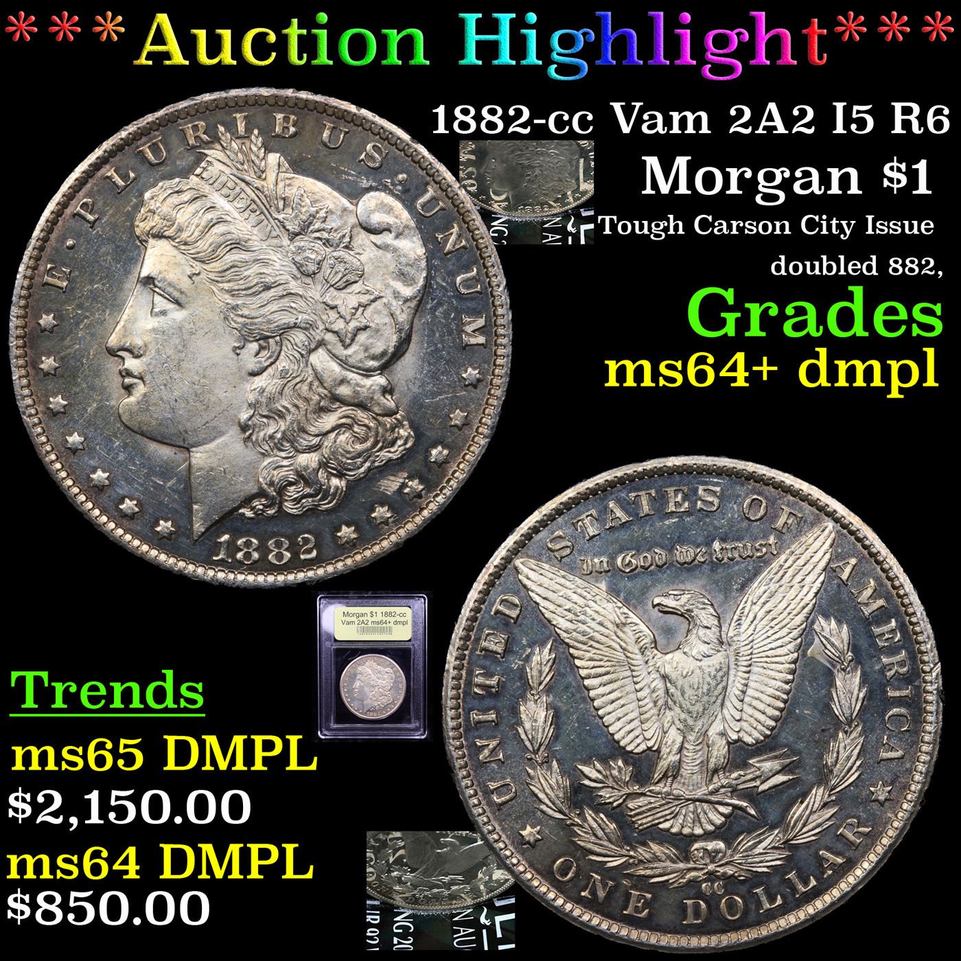 ***Auction Highlight*** 1882-cc Vam 2A2 I5 R6 Morgan Dollar $1 Graded Choice Unc+ DMPL By USCG (fc)