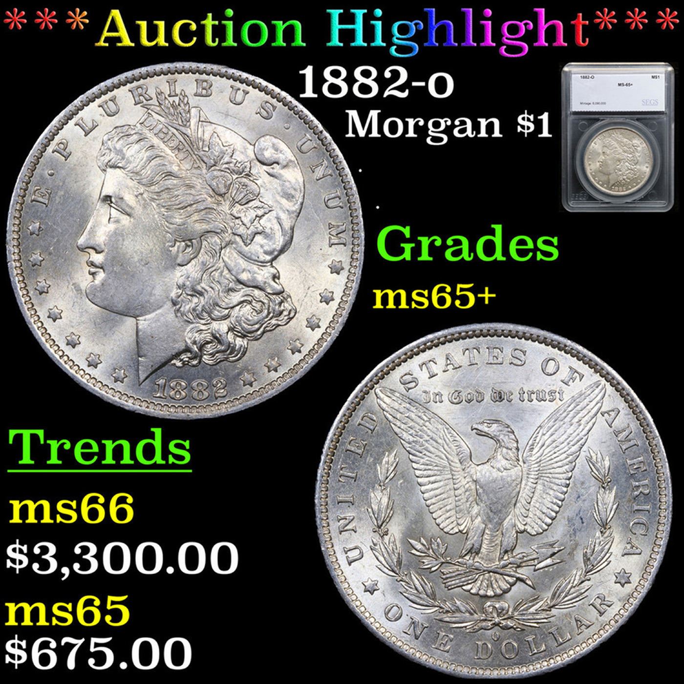 ***Auction Highlight*** 1882-o Morgan Dollar $1 Graded ms65+ By SEGS.