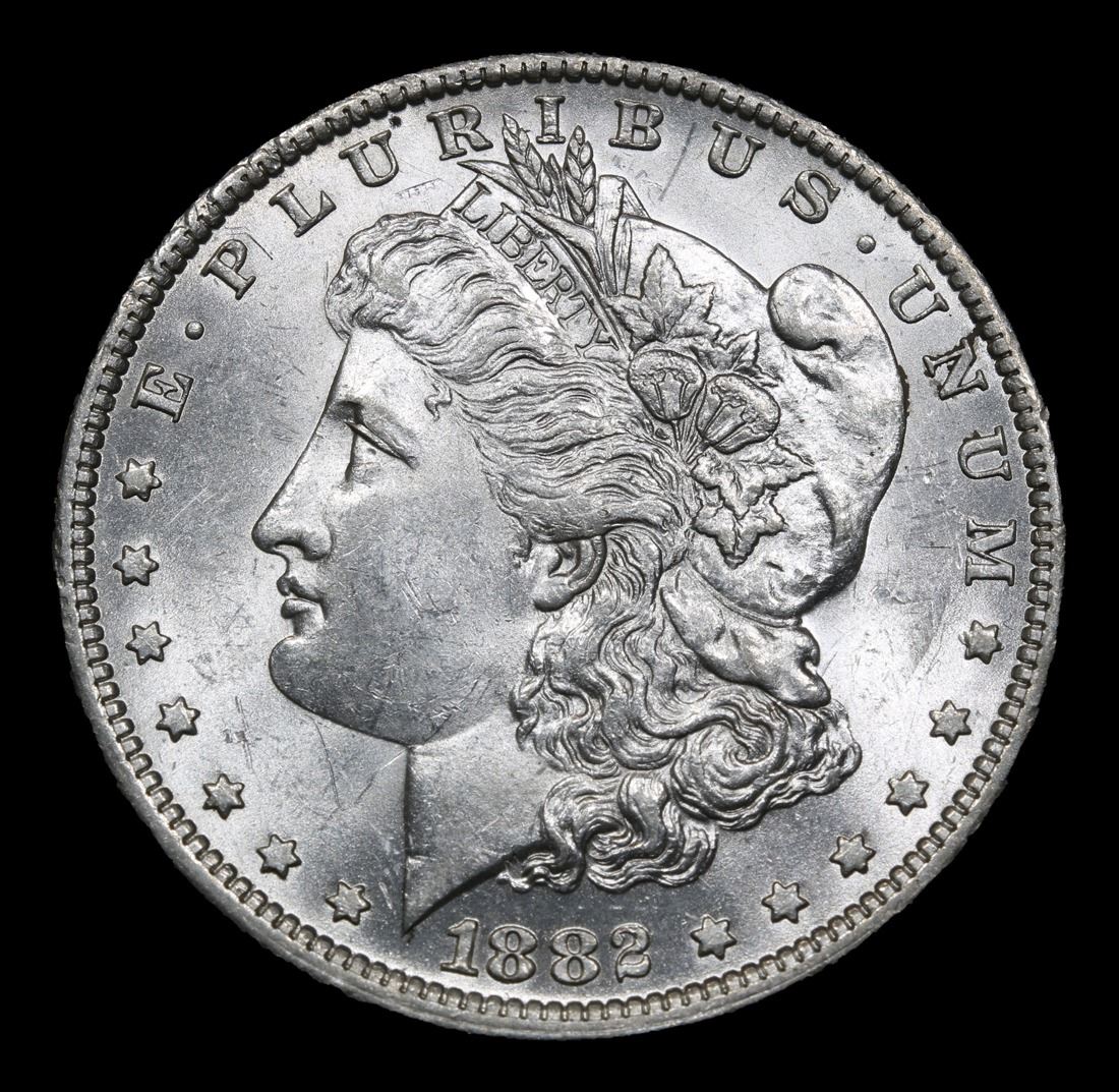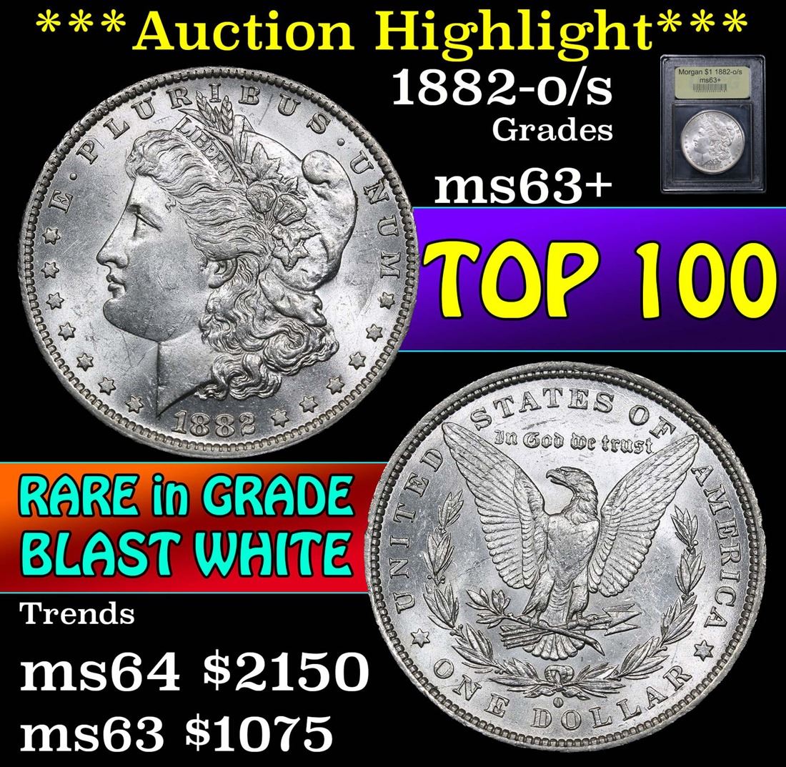 ***Auction Highlight*** 1882-o/s Morgan Dollar $1 Graded Select+ Unc By USCG. The 1882-o/s is not only a TOP 100 Variety, but it is a coin in its own right with a separate line in the Greysheet and all other guides. The 1882-o/s and the 1900-o/cc are generally accepted as needed to complete a Morgan Dollar Set.