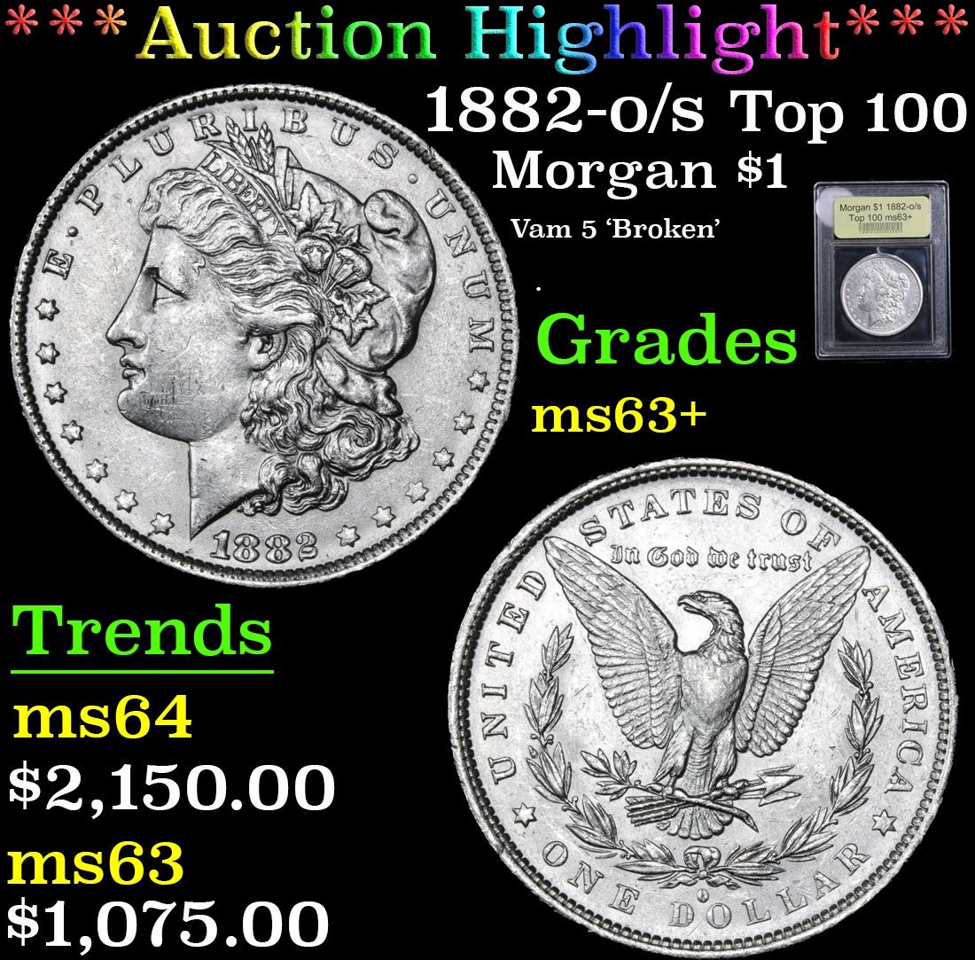 *Auction Highlight* 1882-o/s Top 100 Vam 5 'Broken' . Morgan $1 Graded Select+ Unc By USCG. A Corey's Pick