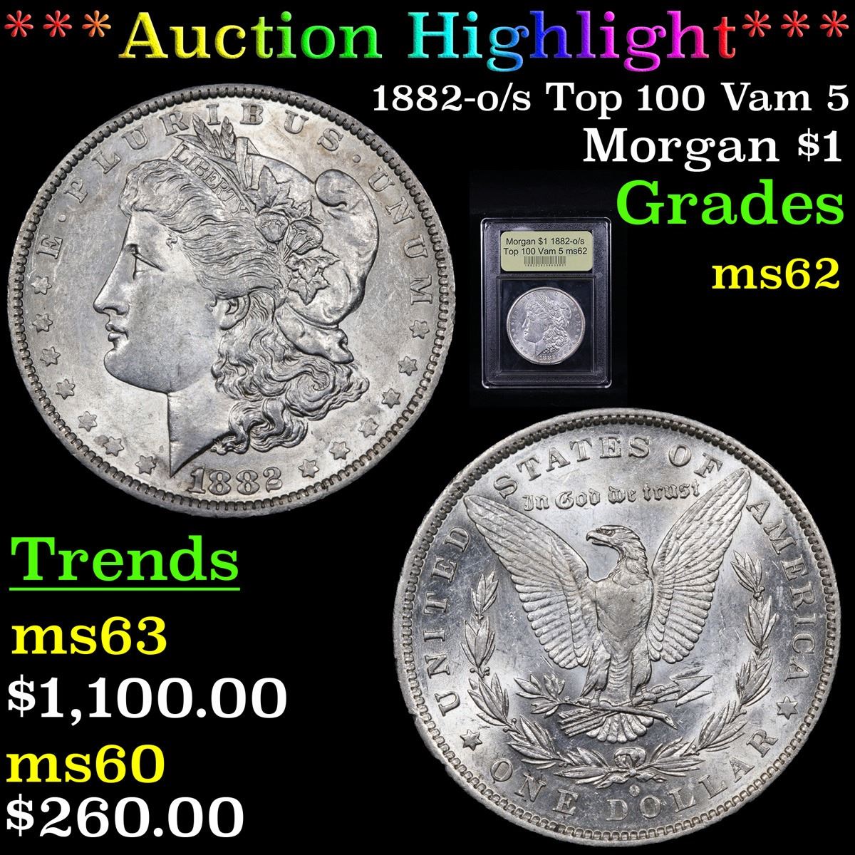 ***Auction Highlight*** 1882-o/s Top 100 Vam 5 . . Morgan Dollar $1 Graded Select Unc By USCG.