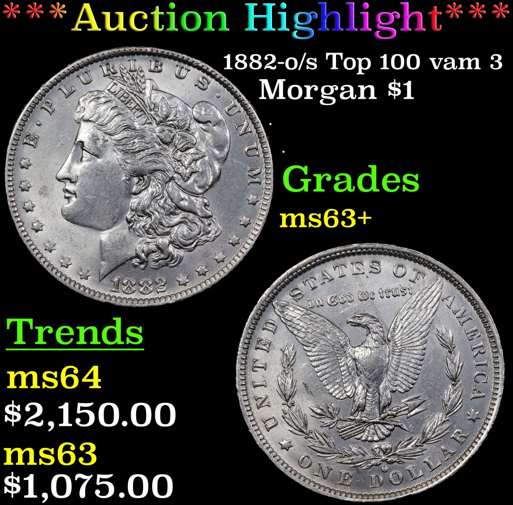 ***Auction Highlight*** 1882-o/s Top 100 vam 3 Morgan Dollar $1 Graded Select+ Unc By USCG. A Corey's Pick, Bid to Win, Don't let it get Away Coin