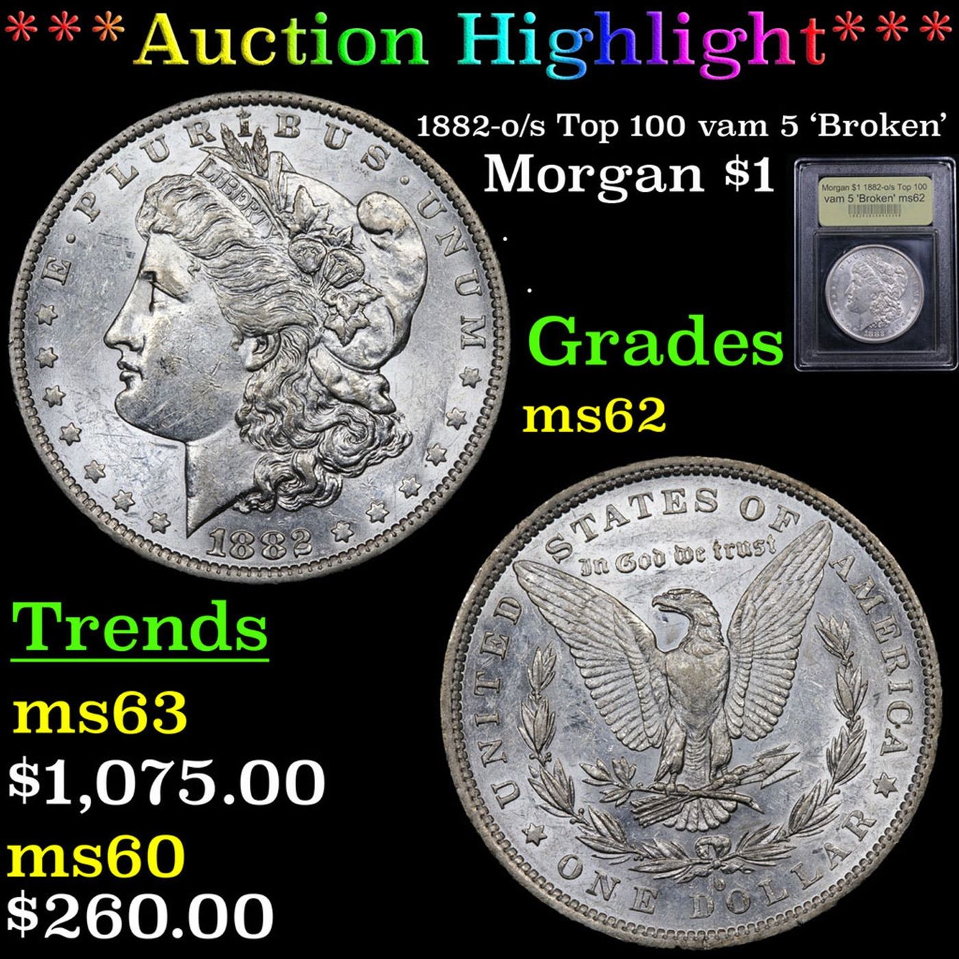 ***Auction Highlight*** 1882-o/s Top 100 vam 5 'Broken' Morgan Dollar $1 Graded Select Unc BY USCG (
