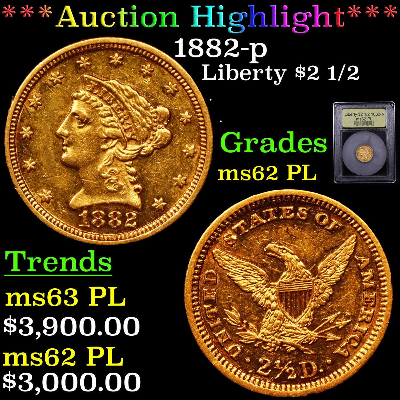 ***Auction Highlight*** 1882-p Gold Liberty Quarter Eagle $2 1/2 Graded Select Unc PL By USCG (fc)