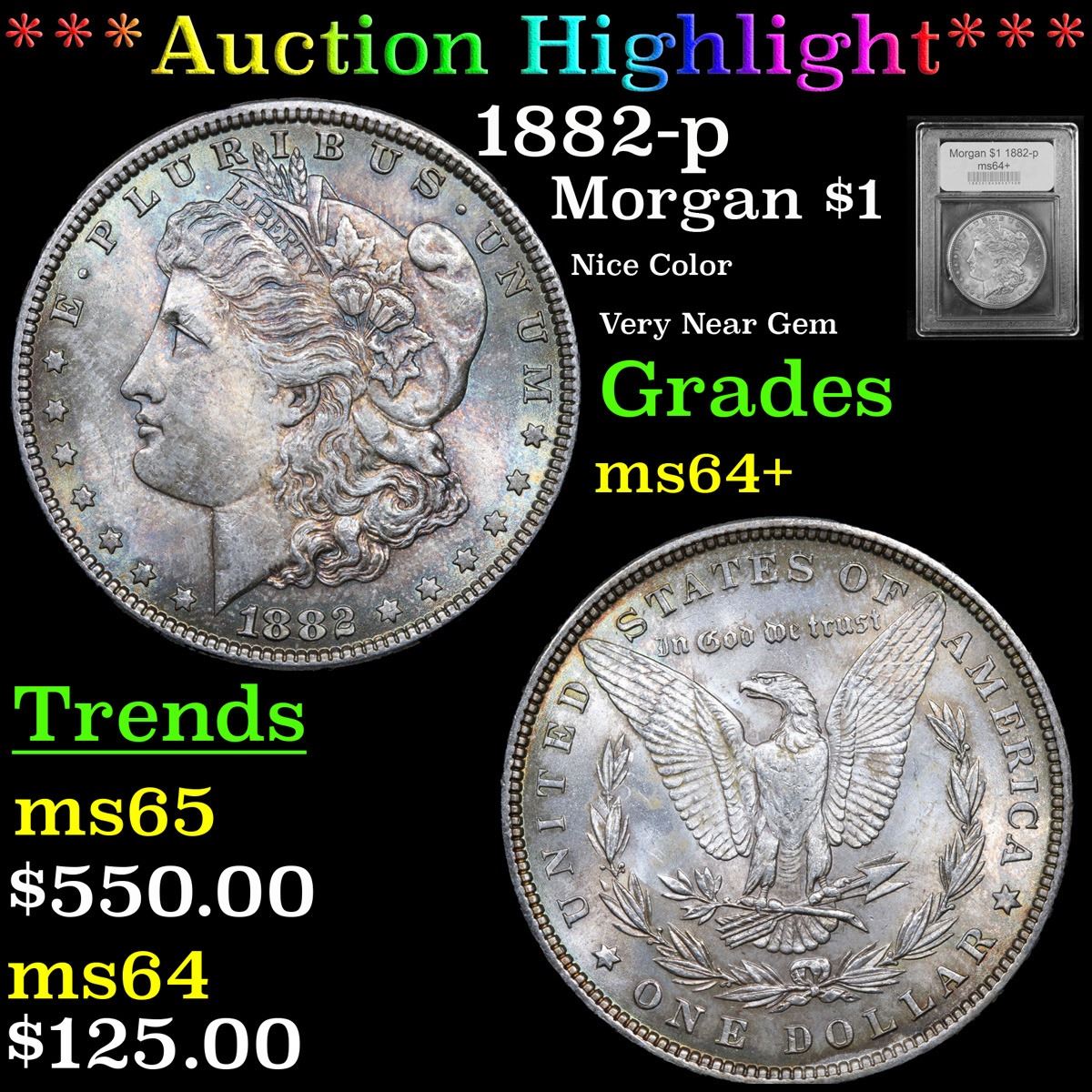 ***Auction Highlight*** 1882-p Nice Color Very Near Gem Morgan Dollar $1 Graded Choice+ Unc By USCG.