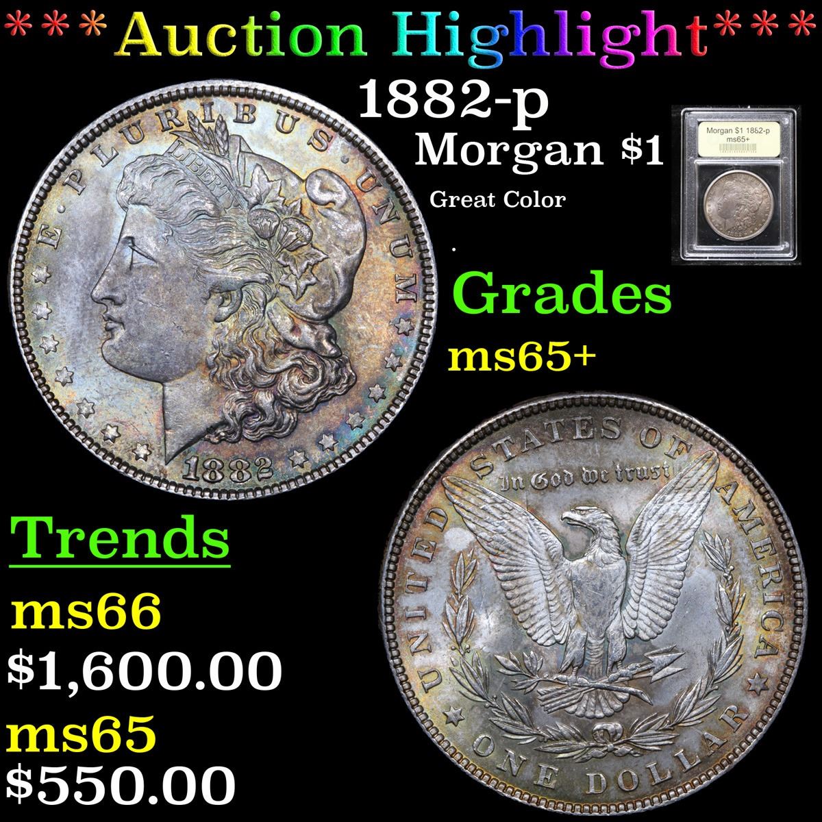 ***Auction Highlight*** 1882-p Great Color . Morgan Dollar $1 Graded GEM+ Unc By USCG.         A Corey's Pick, Bid to Win, Don't let it get Away Coin