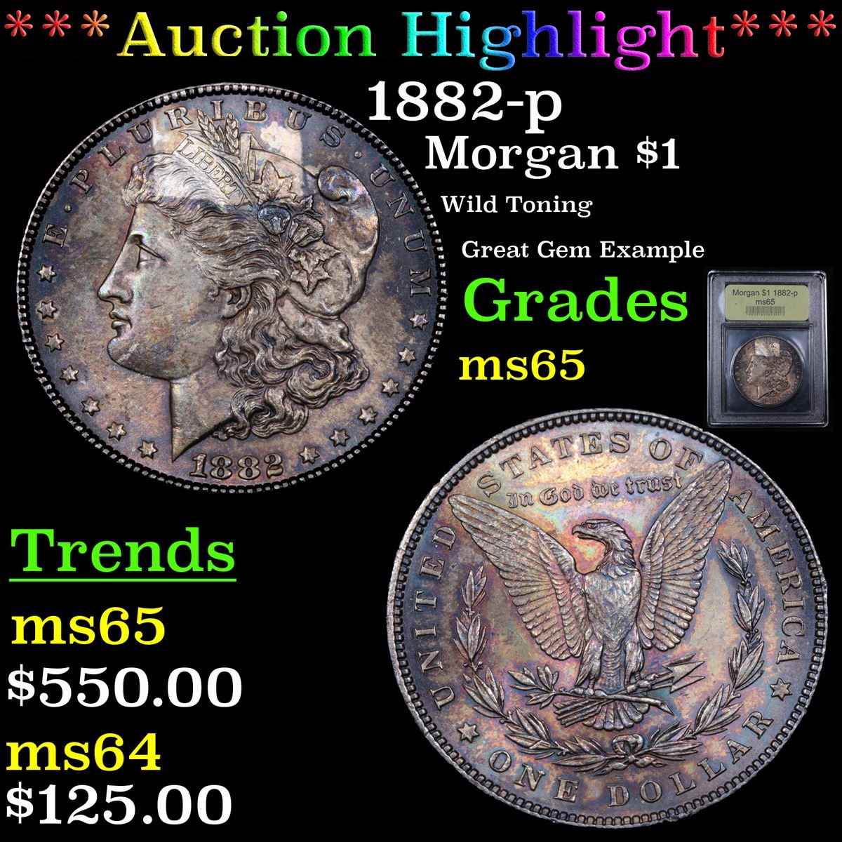 ***Auction Highlight*** 1882-p Morgan Dollar $1 Graded GEM Unc By USCG. 0