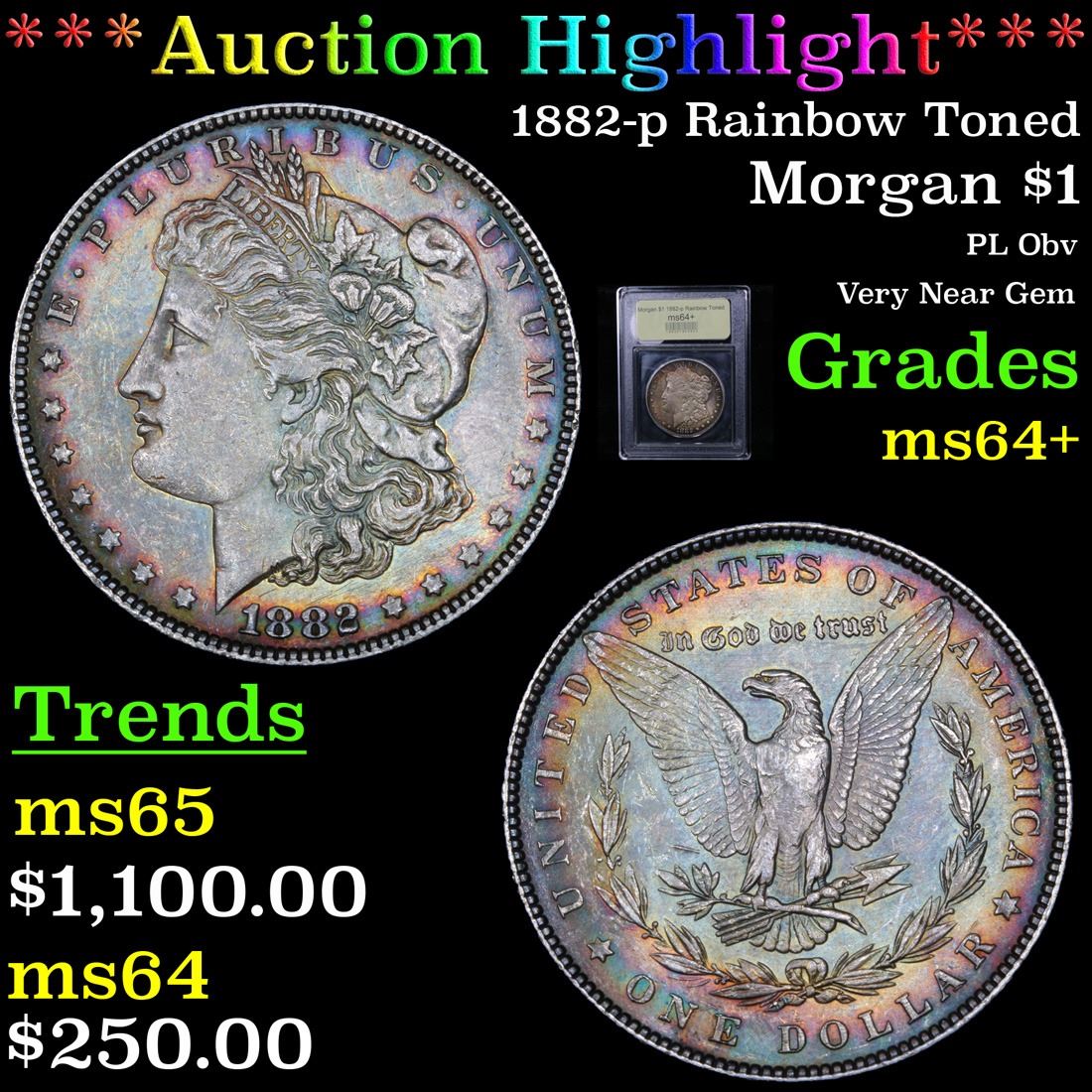 ***Auction Highlight*** 1882-p Rainbow Toned PL Obv Very Near Gem Morgan Dollar $1 Graded Choice+ Unc By USCG. A Corey's Pick, Bid to Win, Don't let it get Away Coin