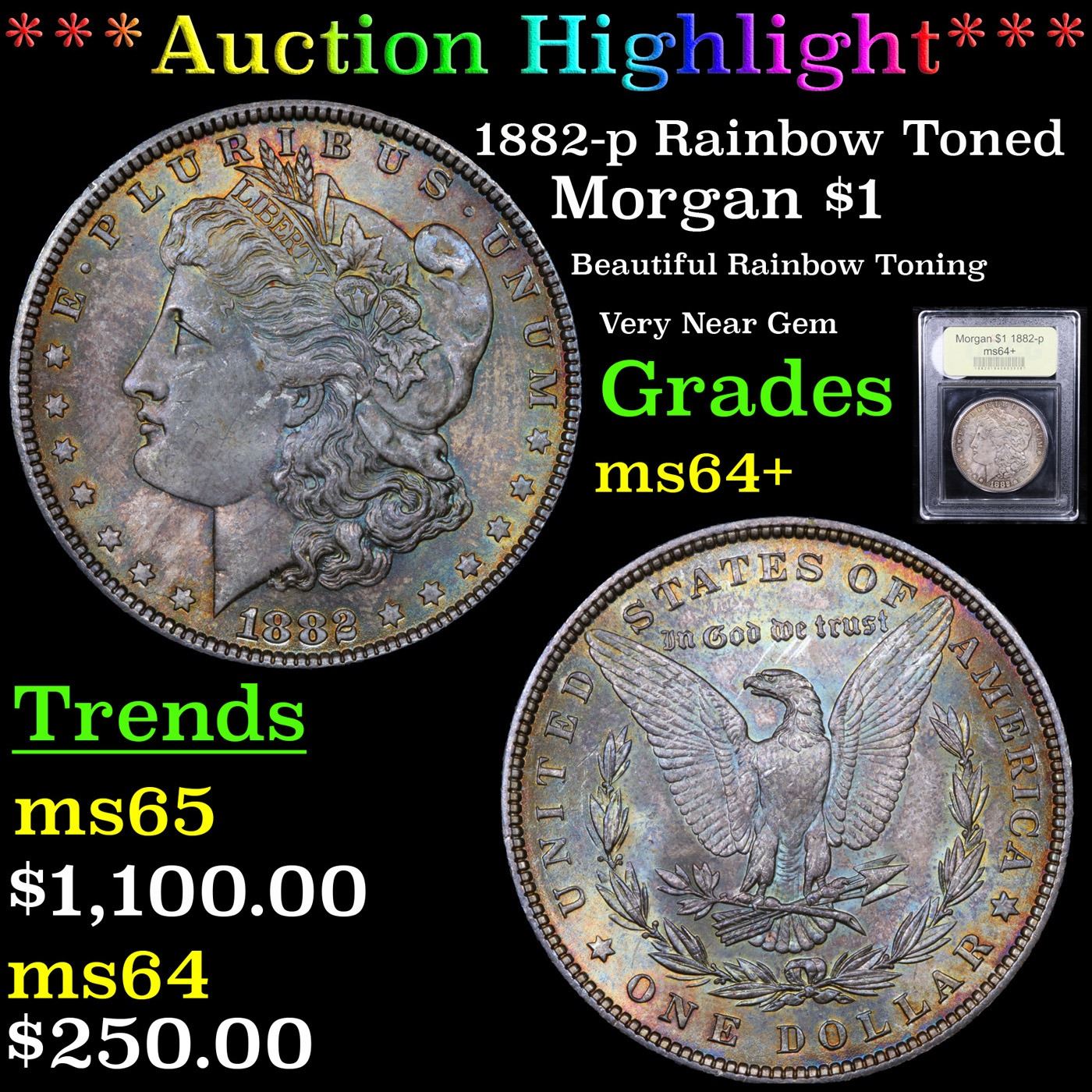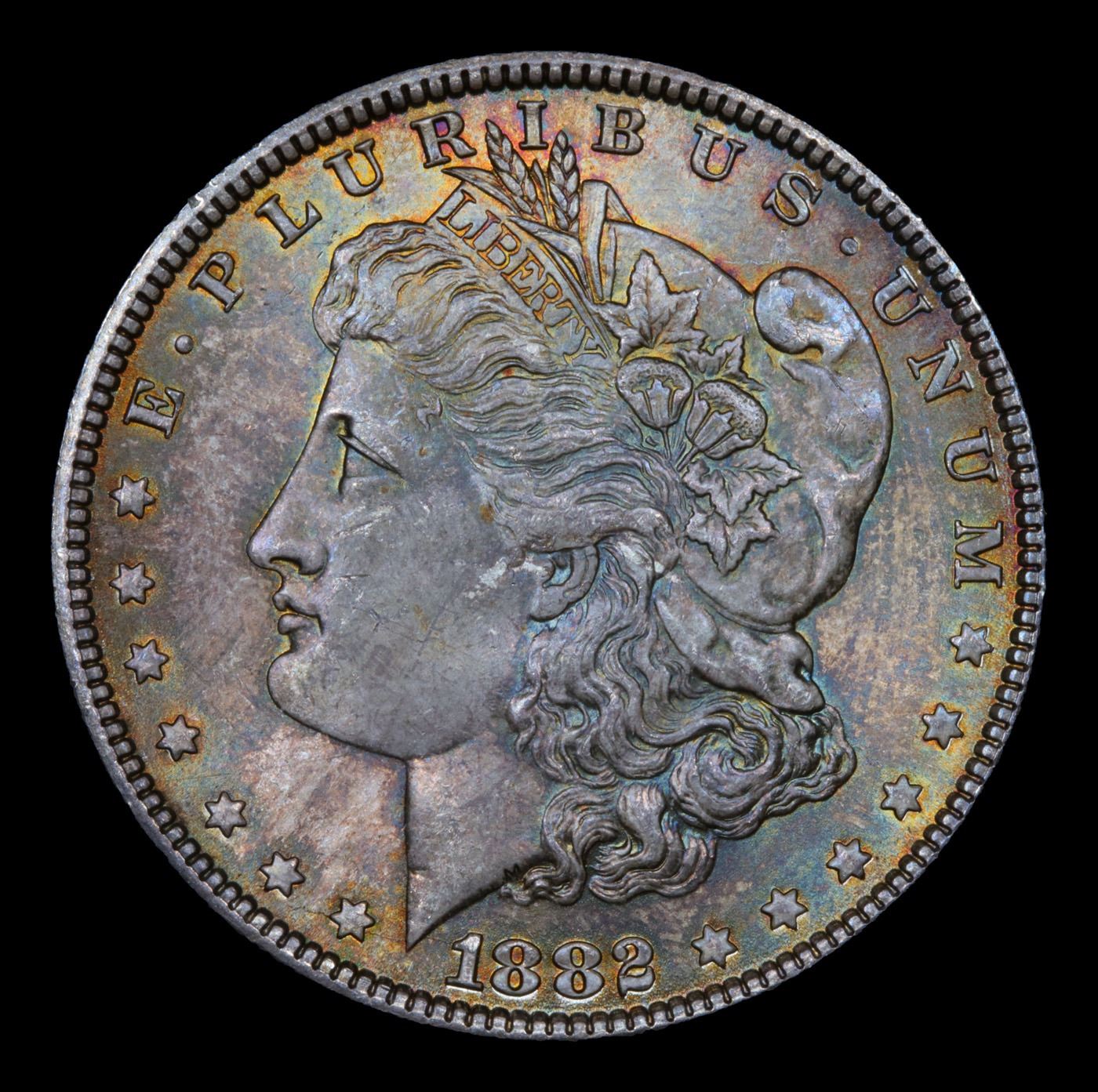 ***Auction Highlight*** 1882-p Rainbow Toned Morgan Dollar $1 Graded Choice+ Unc By USCG. A Corey's Pick, Bid to Win Coin