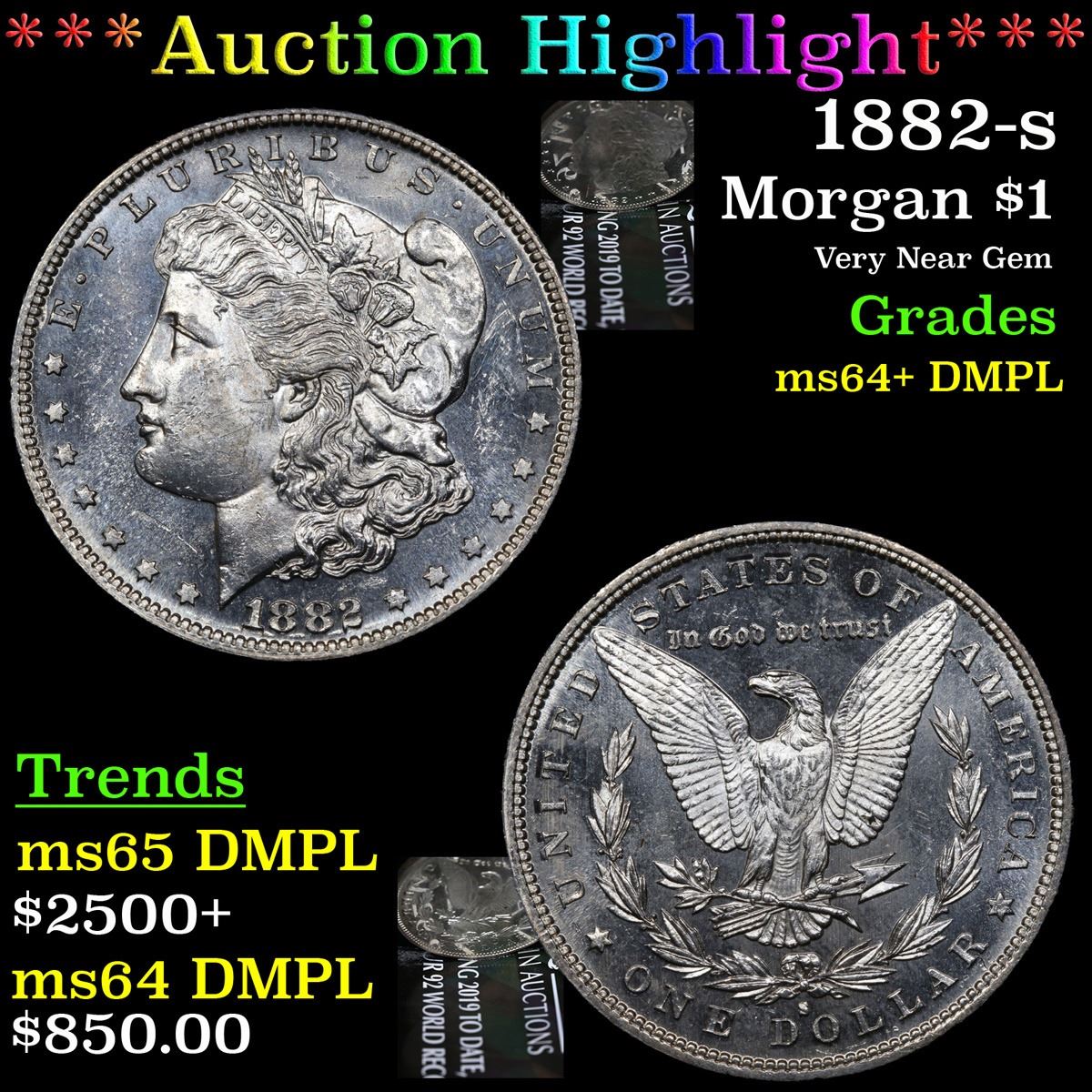 ***Auction Highlight*** 1882-s . Very Near Gem Morgan Dollar $1 Graded Choice Unc+ DMPL By USCG. A Corey's Pick, Bid to Win, Don't let it get Away, you might not find its equal Coin